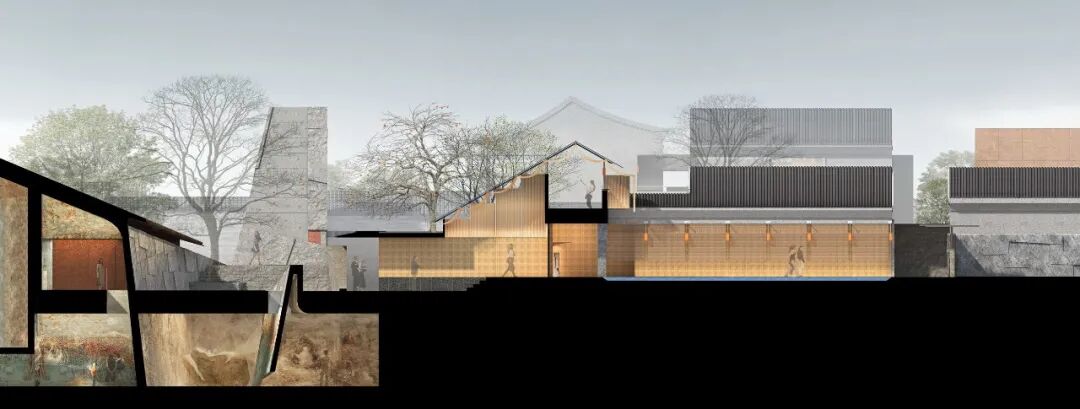 最终的设计从民居、地景、气候三个关键词出发,用“古韵新生”的方式,构筑一个能与打通2300年历史对话的文化场域。
