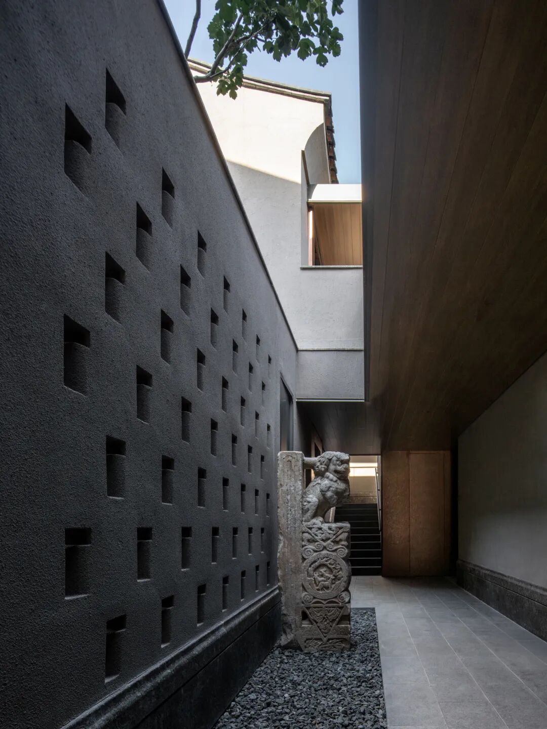 从甬道到夹院,从过街楼到合舍客房,所有虚实体量皆在尺度设定上遵循传统形制,而在具体形式上结合几何构图予以简化,在材料构造上使用当代做法重新演绎。古韵新章,独属于山西民居的空间场景被赋予当代意涵。