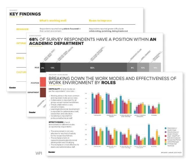 该项目通过共创性的愿景规划,邀请了超过 300 名教职工、学生及行业合作伙伴共同参与。校园的规划方案基于工作场所绩效指数调研与空间利用建模的数据驱动成果,最终形成一个灵活、协作的教学空间体系,并具有在未来十年内于有限的空间内容纳 20% 的增长可能性。