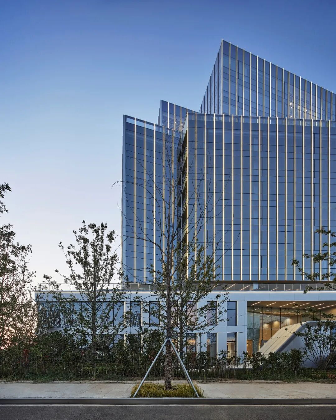 知行科技总部大楼是启迪设计在新质产业空间设计研究与创作实践的又一代表作品,设计团队对新质生产力快速发展背景下科技创新企业的典型复杂需求进行思考与回应:使用功能的高复合性如何匹配土地利用的高效性;业务拓展的不确定性如何挖掘空间使用的适应性;企业形象的高科技感如何激发建筑形态的独特性。