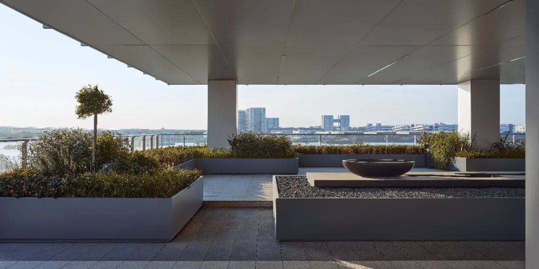 位于11-13层的通高中庭的茶歇空间直面吴淞江