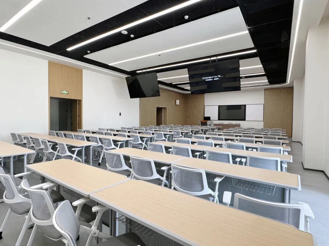项目位于东部新区绛溪南核心区公园大街北侧,地块西临企业总部,东侧为新经济智慧产业园,南侧邻公园大道;围绕人才培育全流程的需求,整合教学、会议、办公、展销、实训等功能,打造“教学-实训-考试-展示”一体化空间。