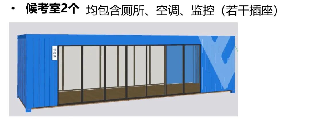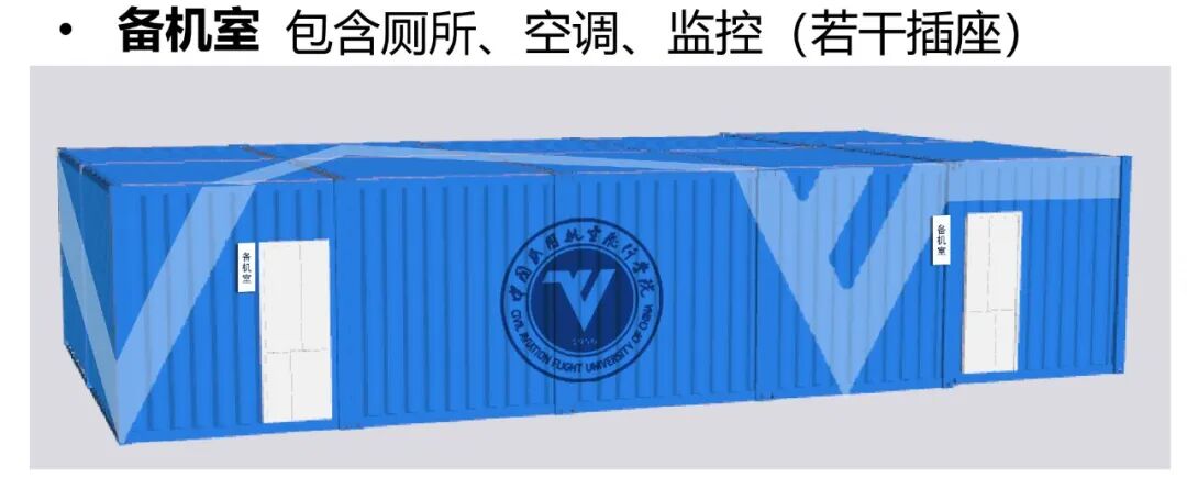 室外场地在模块化硬化设计基础上,引入废旧集装箱循环利用方案。通过专业维修加固与定制化喷涂,将集装箱改造为室外配套功能房间,涵盖室外候考区、多旋翼考试操作间、实训休息室等场景。其中,多旋翼考试操作间可直接对接室外实训场,方便学员在短时间内完成“理论-实操”衔接;候考区与休息室配备通风、照明及简易储物设施,既满足基础使用需求,又降低新建能耗与成本。