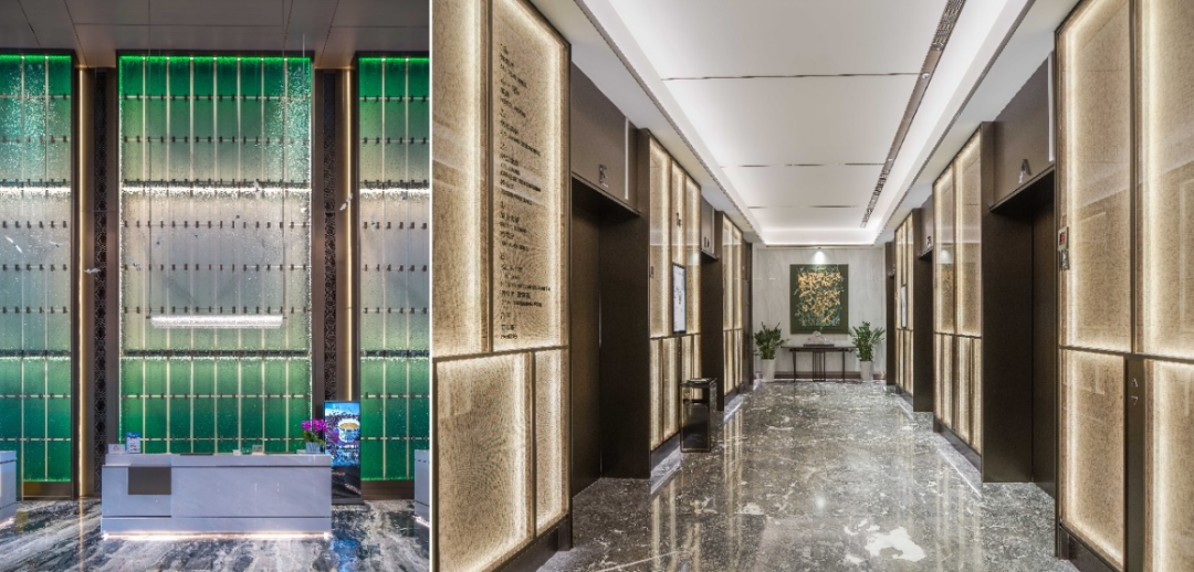 酒店主入口采用架空设计,结合镜面水景营造沉浸式景观体验。落客区通过艺术屏风的巧妙遮蔽,既保障宾客隐私,又塑造出静谧而富有仪式感的入口空间。