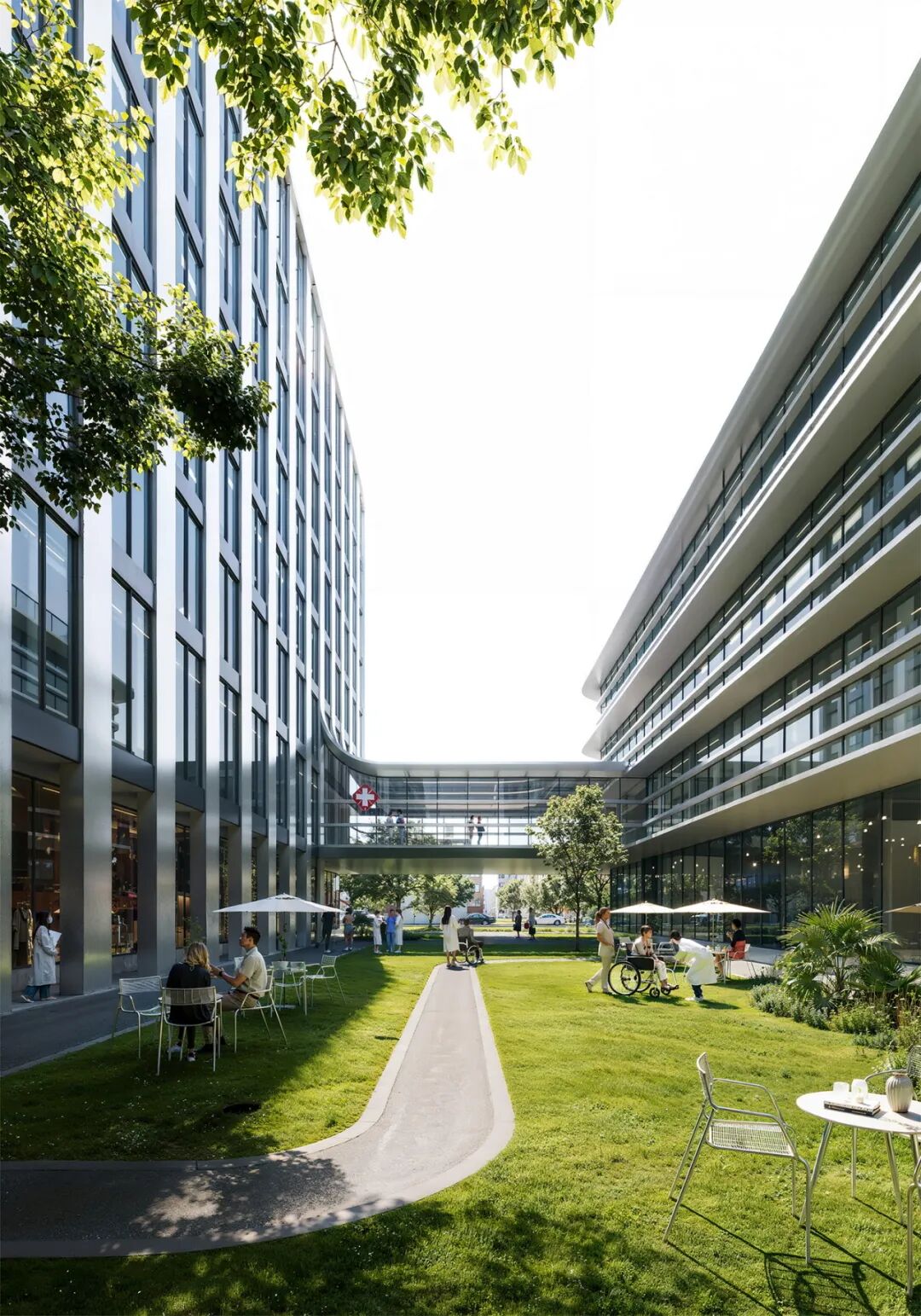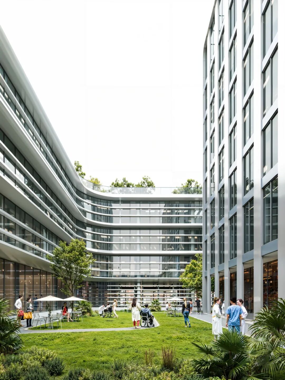 主入口合理退让,形成拥抱城市的前场空间,既满足医疗建筑的标识性需求,又创造出友好的过渡区域。这里不再是令人望而生畏的医疗禁区,而成为社区的有机组成部分。
