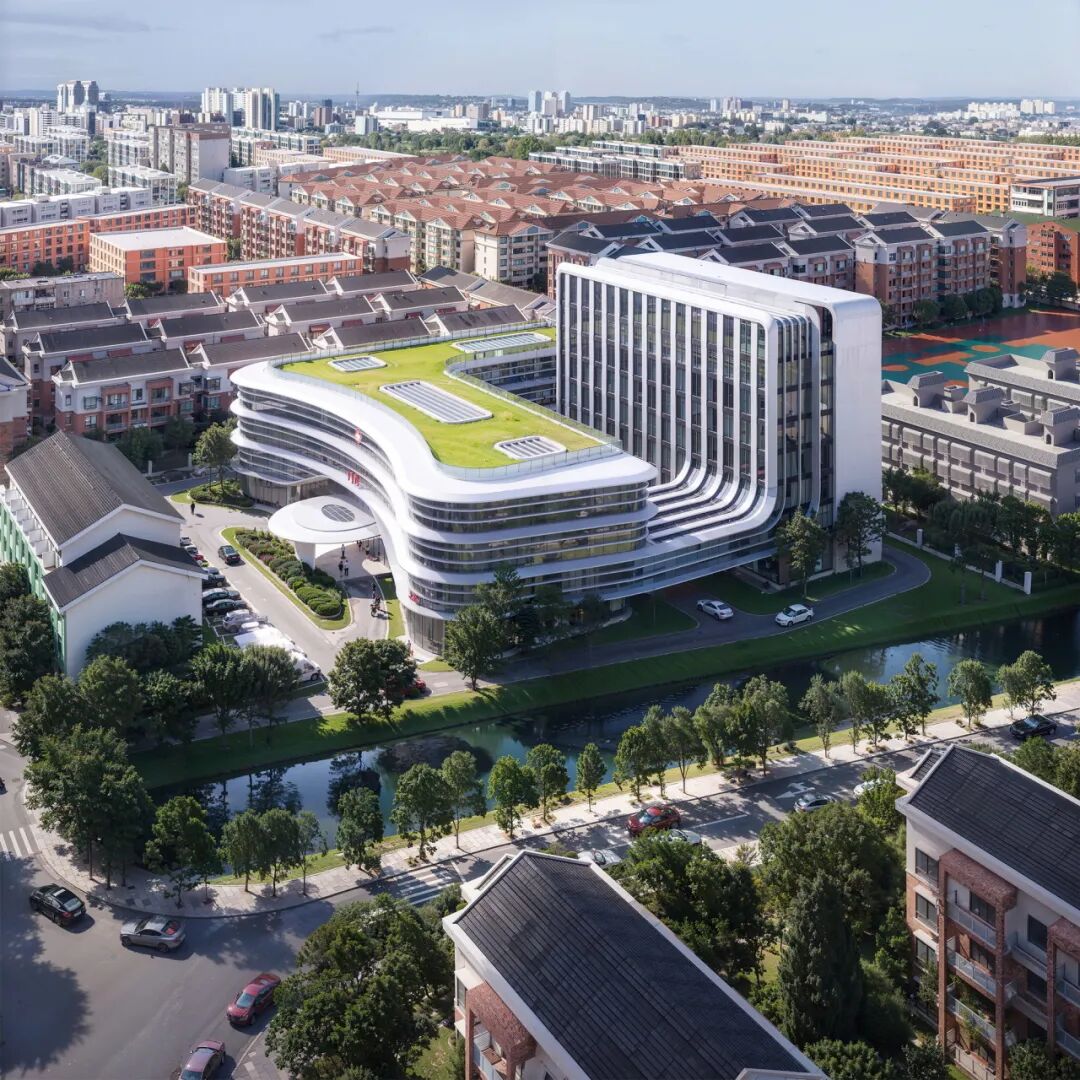 原有的住院大楼经过整体翻新改造,焕发新的生命力。新建门诊综合楼与保留建筑相互环抱,形成守护生命的“健康环”,象征着医疗服务的持续与传承。这种新旧交融的叙事,为建筑注入了时间的厚度与情感的溫度。