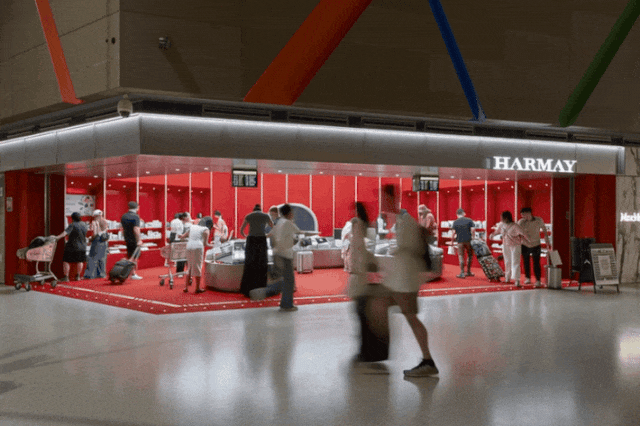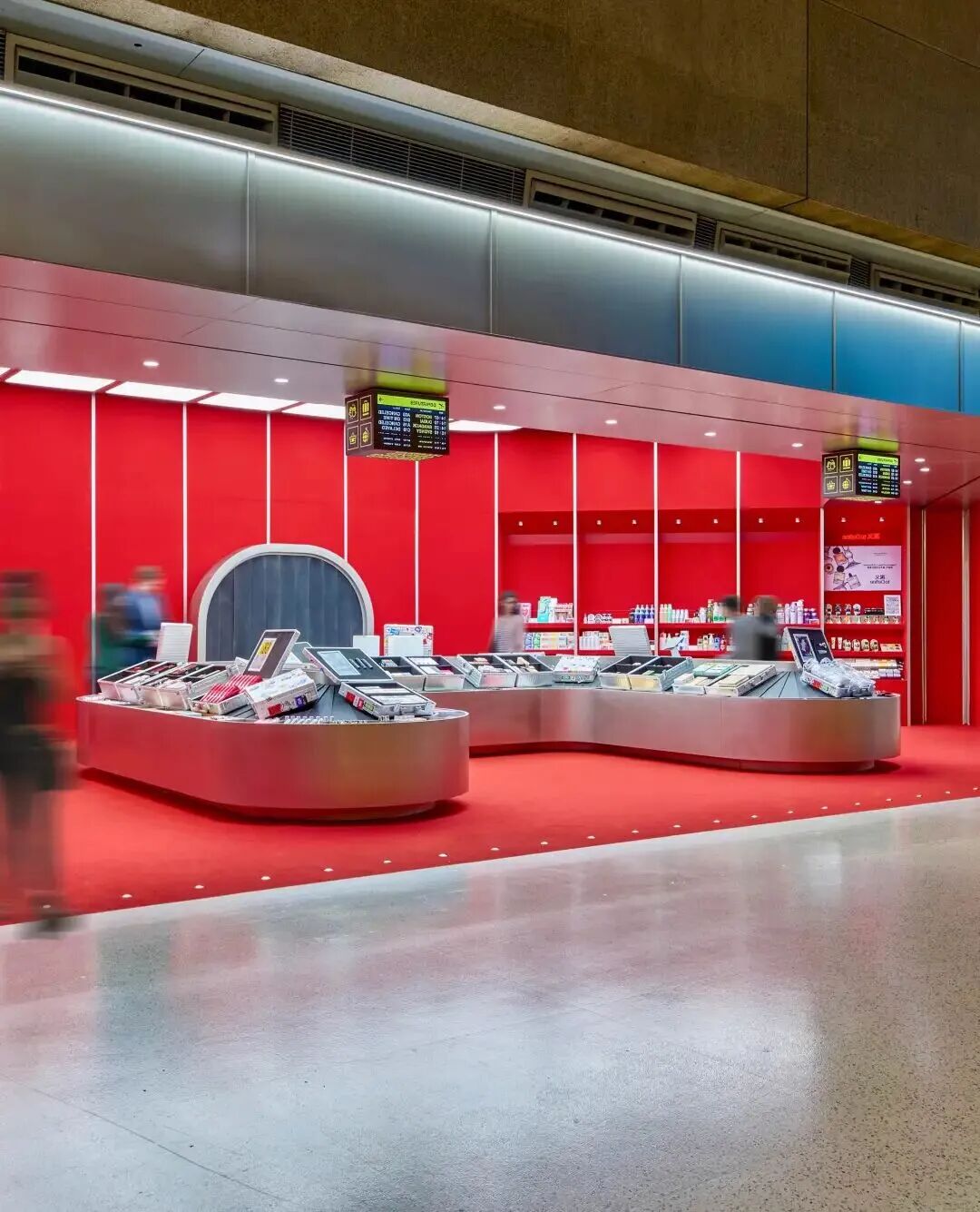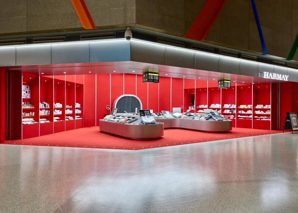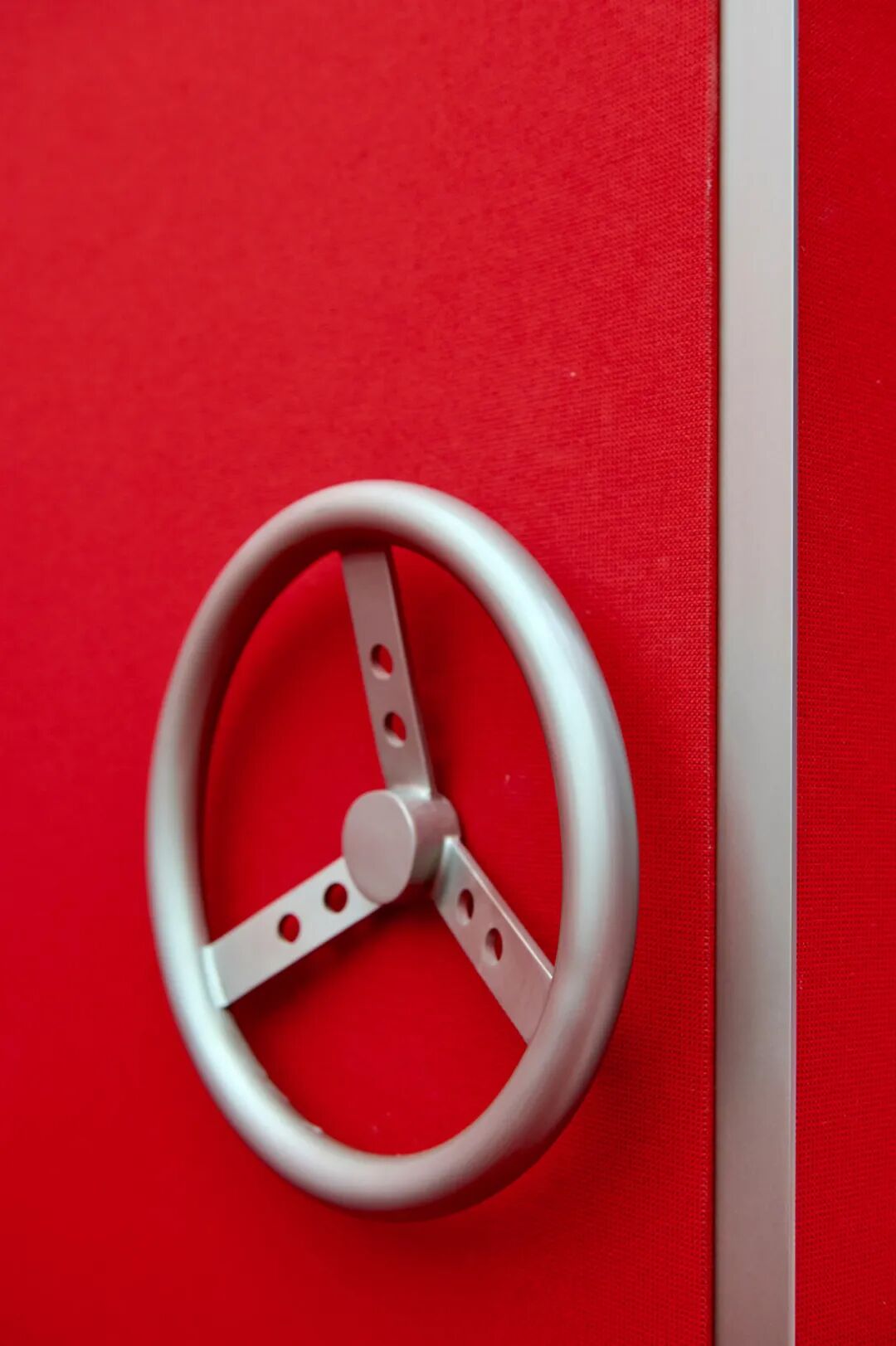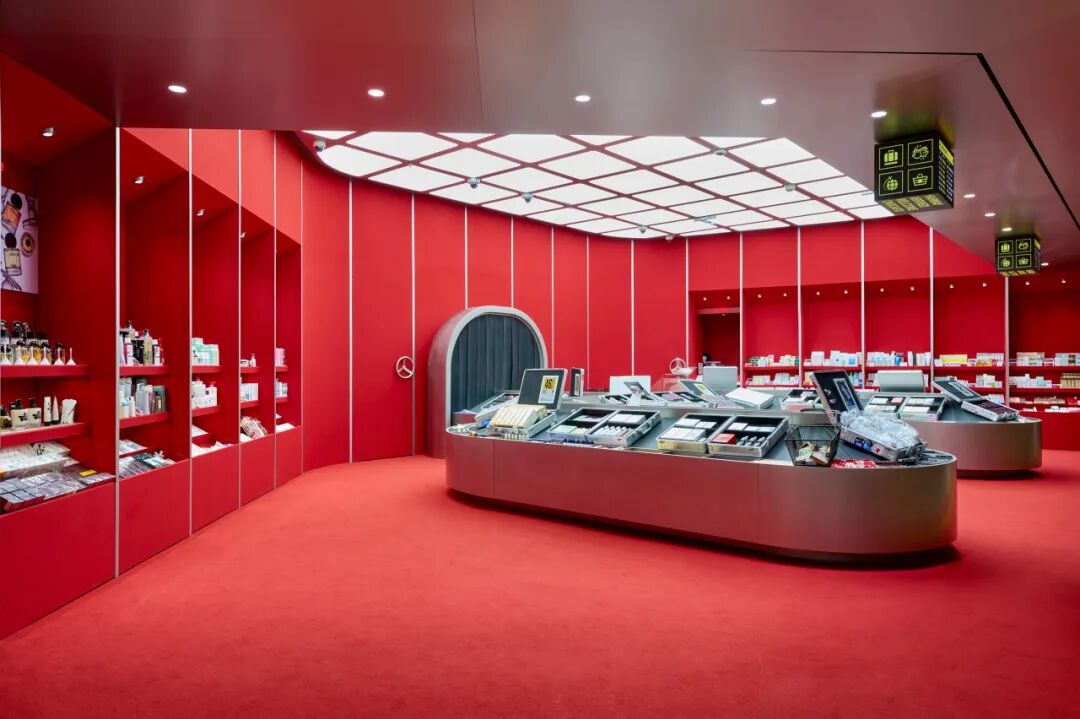 Main Materials: Red fabric, Red carpet, Ceiling membrane, Stainless steel