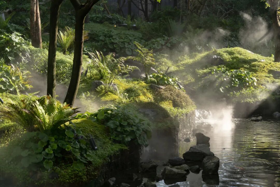 让自然过程成为空间生成的主导力量。植物在自身的节奏中生长与繁衍。石、木、苔的肌理,在时间的浸润下渐次温润。空间也因此拥有了自己的脉搏与情绪。它不止于形,不止于物,而是一种被时间与自然共同雕刻的精神节奏。
