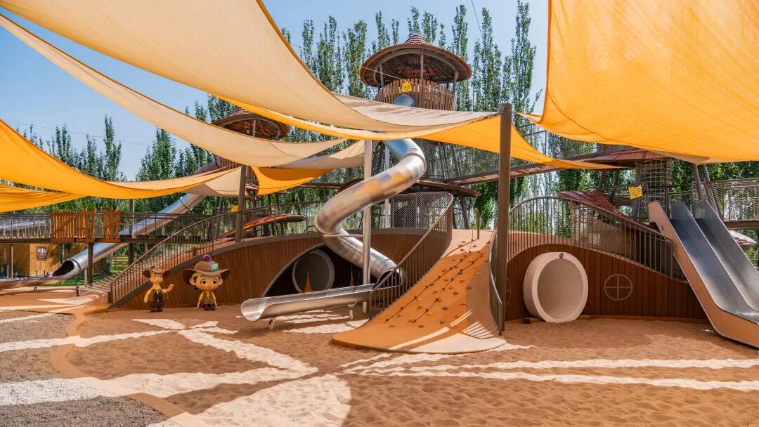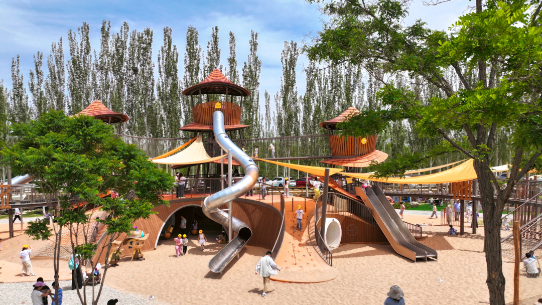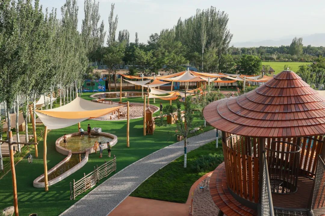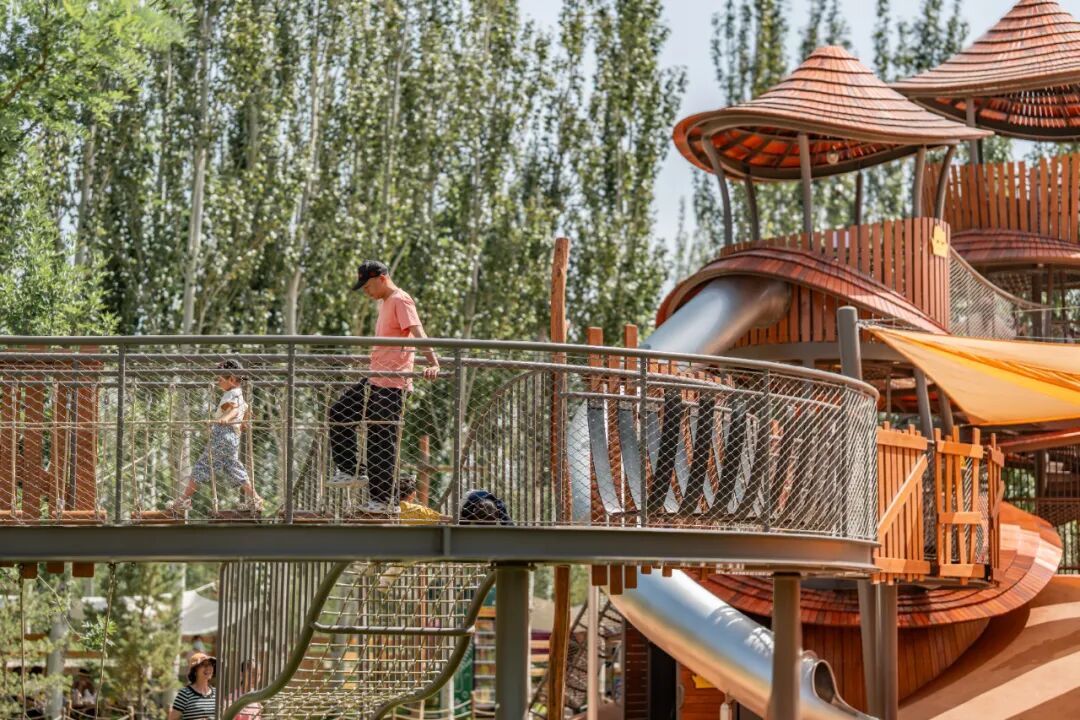 这是一个可以远眺贺兰山的乐园。在照顾儿童成长喜好的基础上,既满足孩子的精力释放与好奇心,又兼顾全年龄段的家庭需求,给予人们充分的闲暇时光。