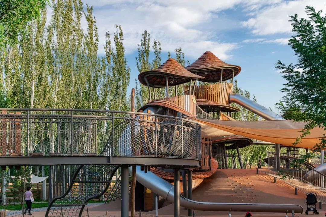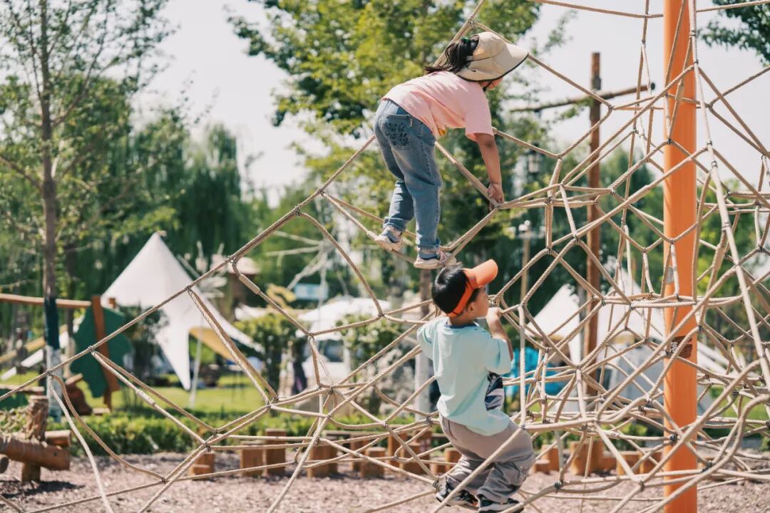 乐园建设遵循自然法则,讲究安全、真实,最大程度保留原先的树木;在选材、工艺、做法上更注重可持续性与实用性,让运营前置,充分融入设计。