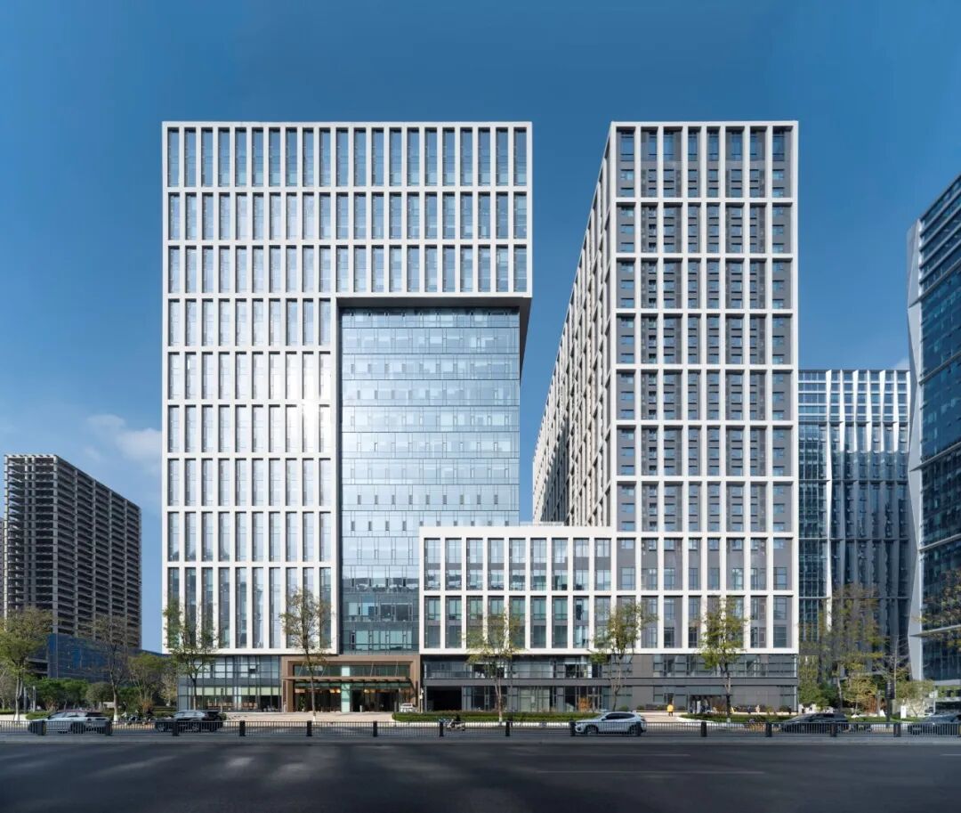 本项目是一个集政务服务、商务办公、商业与居住功能于一体的智慧政务综合体,设计方案以“城市窗口”为核心概念,人才公寓及商务办公塔楼采用L型体量相互咬合,在视觉上形成一个连贯的建筑语言,在城市界面上勾勒出鲜明的“窗口”形象,这不仅象征着政务服务的“城市之窗”,代表着开放与透明的政府形象,也象征着城市新风貌的“形象之窗”,彰显着城市的活力与现代感。此外,它还是一个“展示之窗”,向城市展示着智慧政务综合体的创新精神和文化魅力。