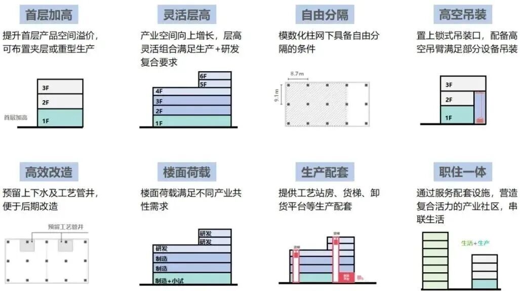 双拼厂房:适合中小型创新企业,降低初期成本,共享配套设施。