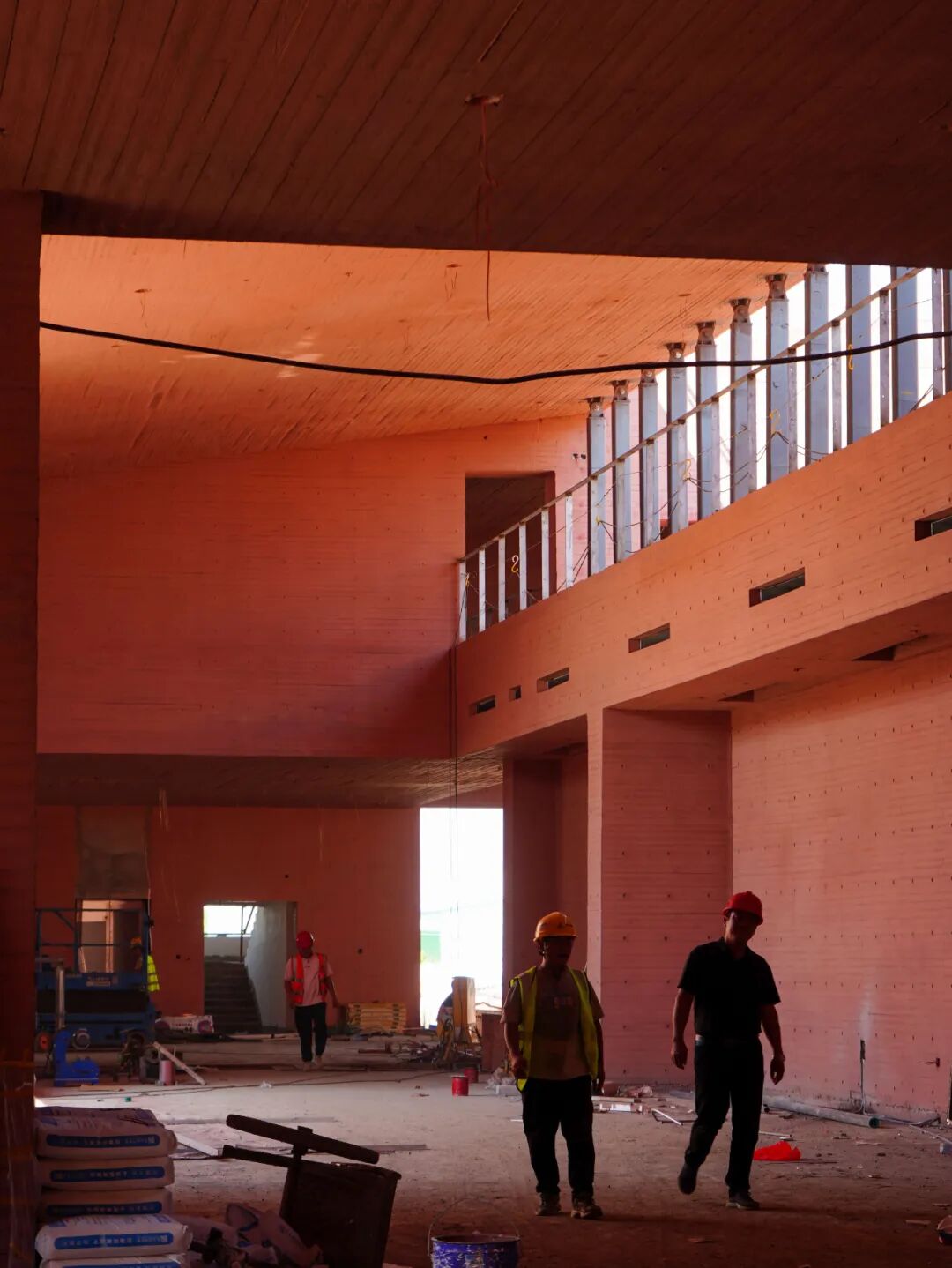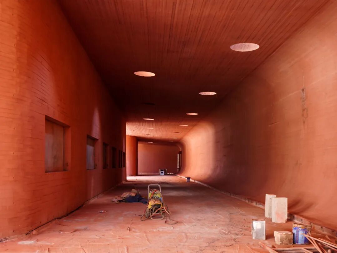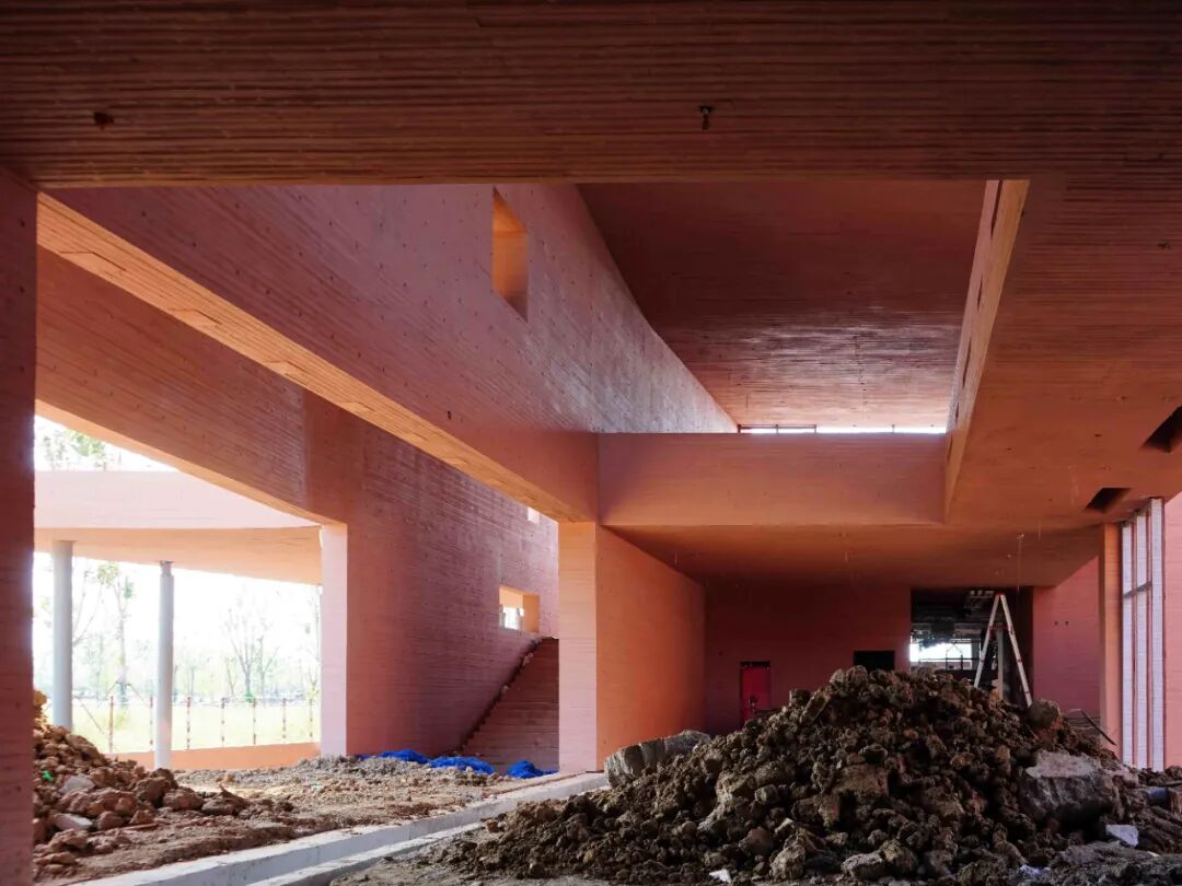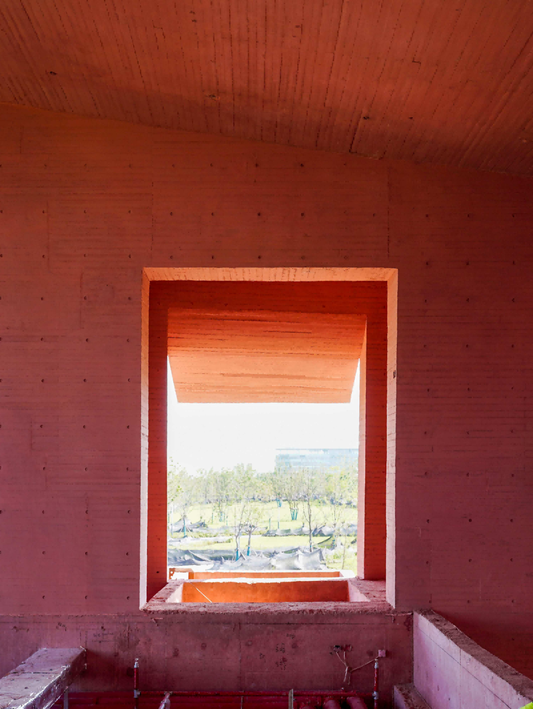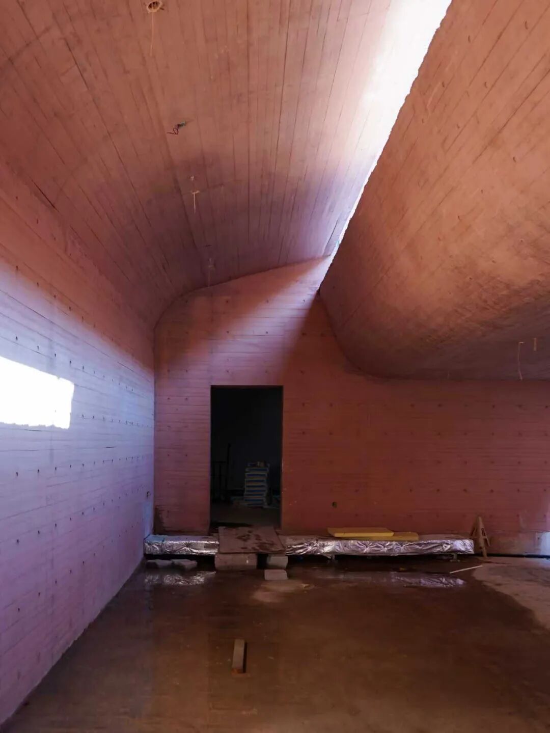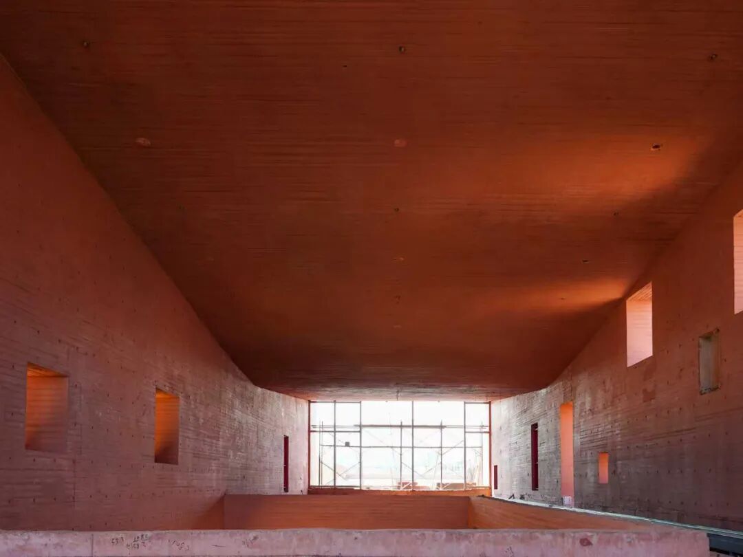 红色清水混凝土以粗犷而虔诚的肌理向上生长,在空间中凝固成一种原始而神性的存在。光线从高窗或缝隙间渗入,在坚硬的红色表面发生微妙折射,明与暗的对话使得每一道凹凸、每一处斑驳都仿佛拥有了呼吸。这并非寻常的室内,而是一座等待故事的医学博物馆,肃穆中涌动着对生命奥秘的追问。而在它之上,一片未来的绿色屋顶花园正被期待——那里将会有柔软的草木在混凝土的刚性中萌发,以生命的鲜活柔和这座建筑内在的沉思力量,完成一场医学、自然、生命与空间诗学的最终和解。