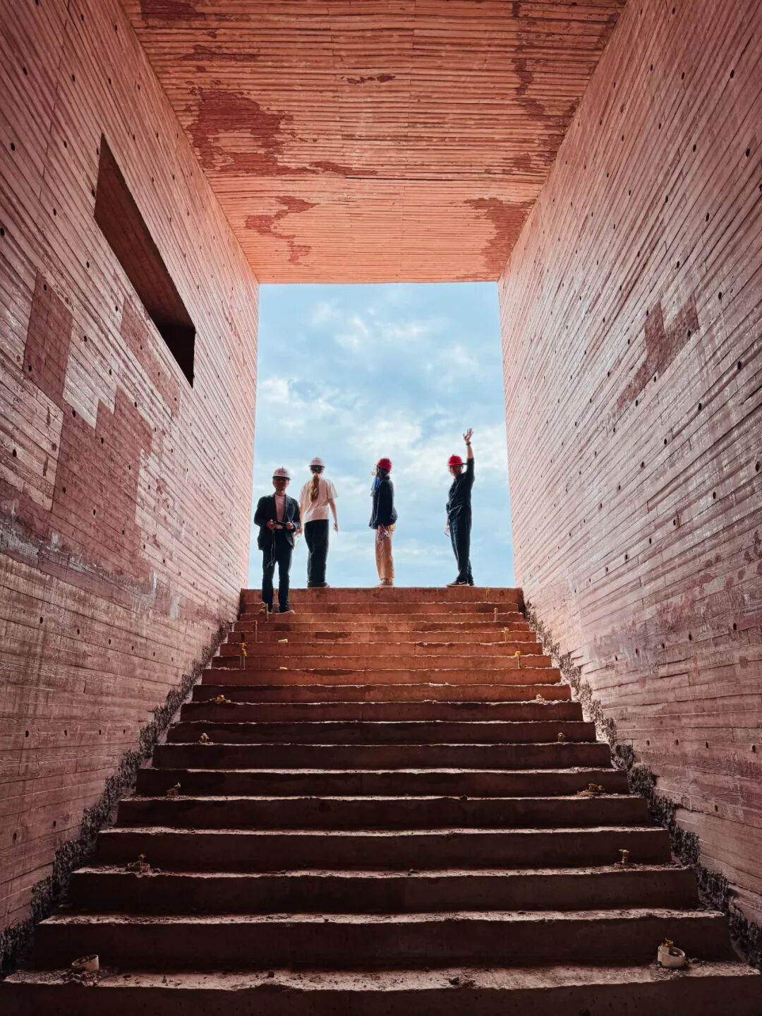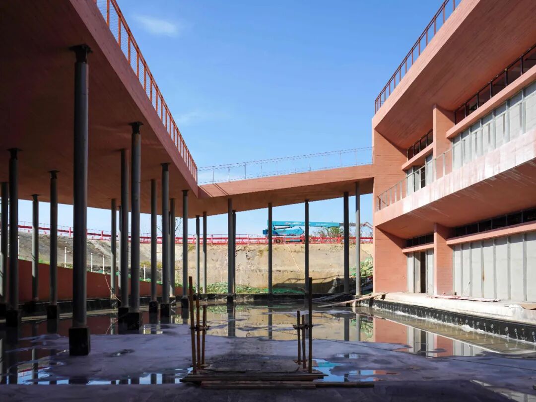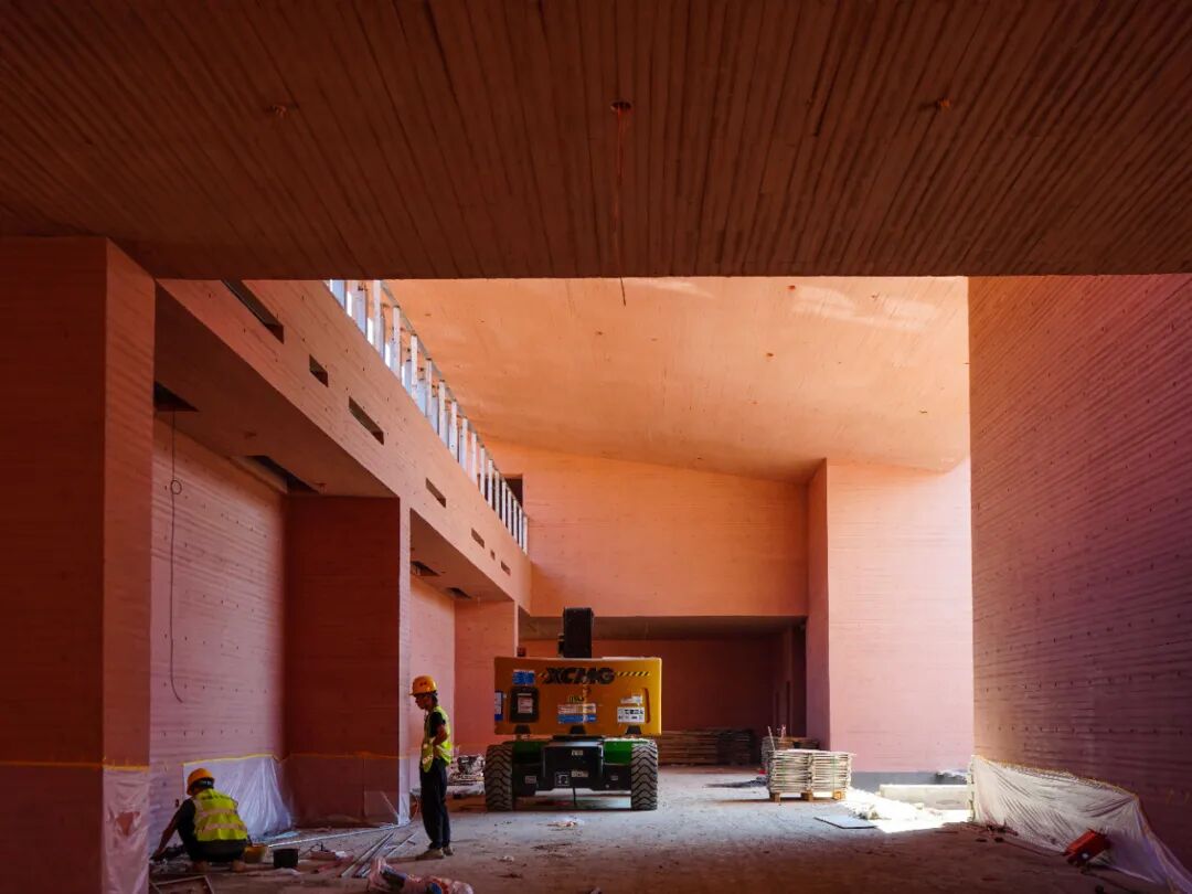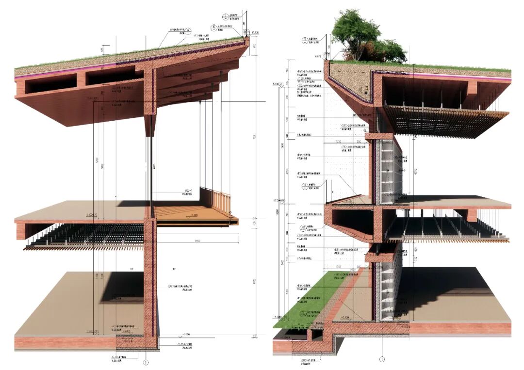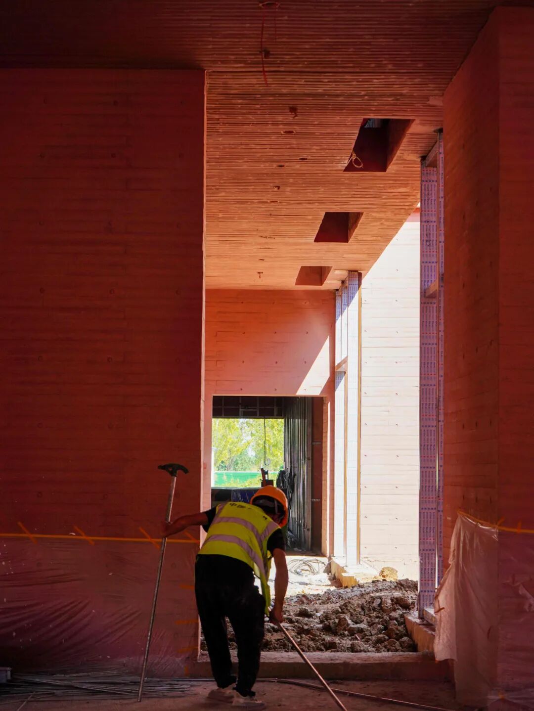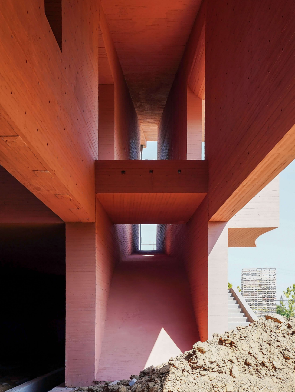 红色清水混凝土以粗犷而虔诚的肌理向上生长,在空间中凝固成一种原始而神性的存在。光线从高窗或缝隙间渗入,在坚硬的红色表面发生微妙折射,明与暗的对话使得每一道凹凸、每一处斑驳都仿佛拥有了呼吸。这并非寻常的室内,而是一座等待故事的医学博物馆,肃穆中涌动着对生命奥秘的追问。而在它之上,一片未来的绿色屋顶花园正被期待——那里将会有柔软的草木在混凝土的刚性中萌发,以生命的鲜活柔和这座建筑内在的沉思力量,完成一场医学、自然、生命与空间诗学的最终和解。