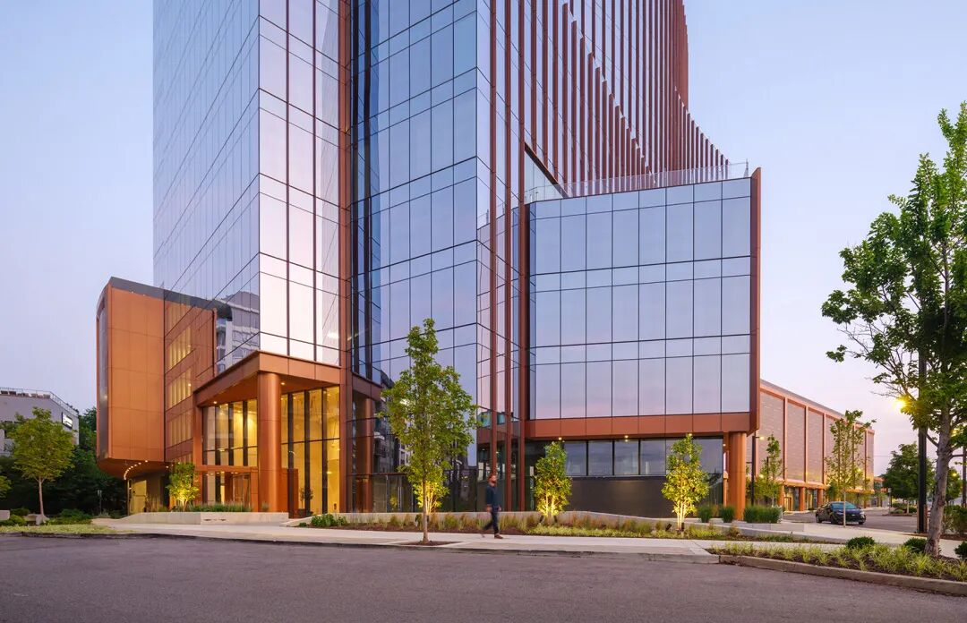 芝加哥 —(2025年10月29日)—国际知名建筑设计公司GP建筑设计有限公司(GP)宣布,位于田纳西州纳什维尔的全新办公楼项目“城市大道5号”已顺利竣工。该项目由芝加哥的全方位房地产投资公司冠越地产(Convexity Properties)开发,该公司在美国拥有多元化的投资组合。新建筑坐落于纳什维尔西区 OneC1ty 综合用途社区的核心地段,是该区域内的最高建筑,高达15层。它以充满活力的建筑风格和新一代办公环境著称,为这座城市发展最快的社区之一注入了新的活力。