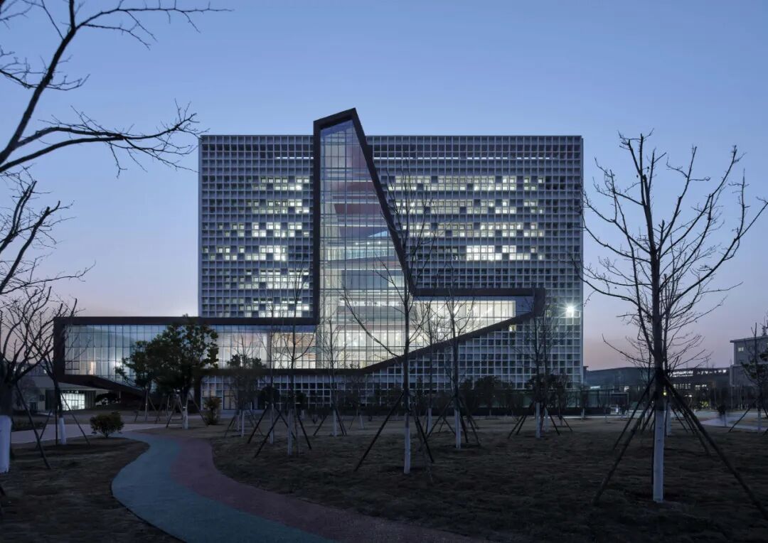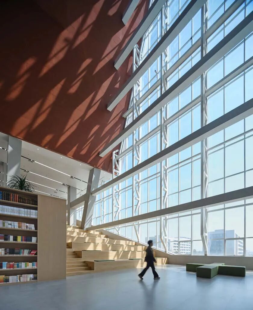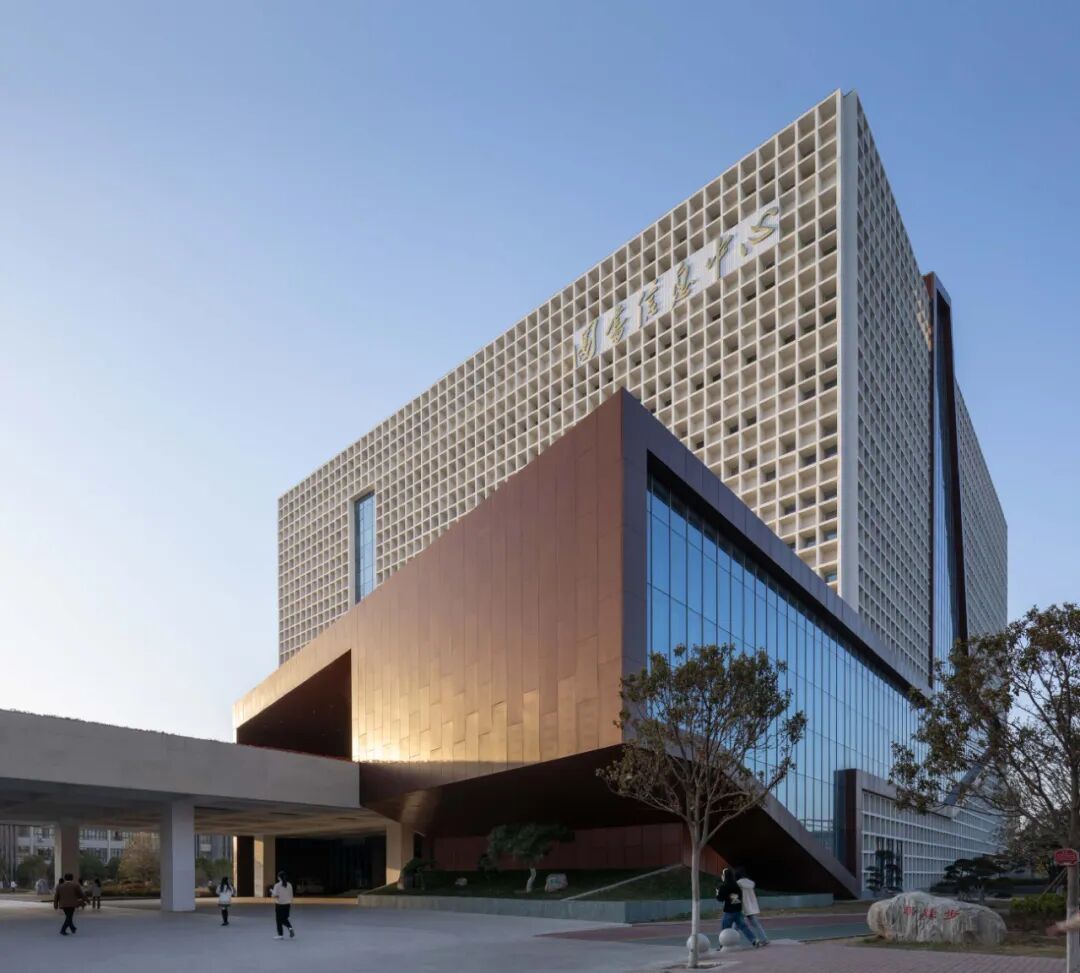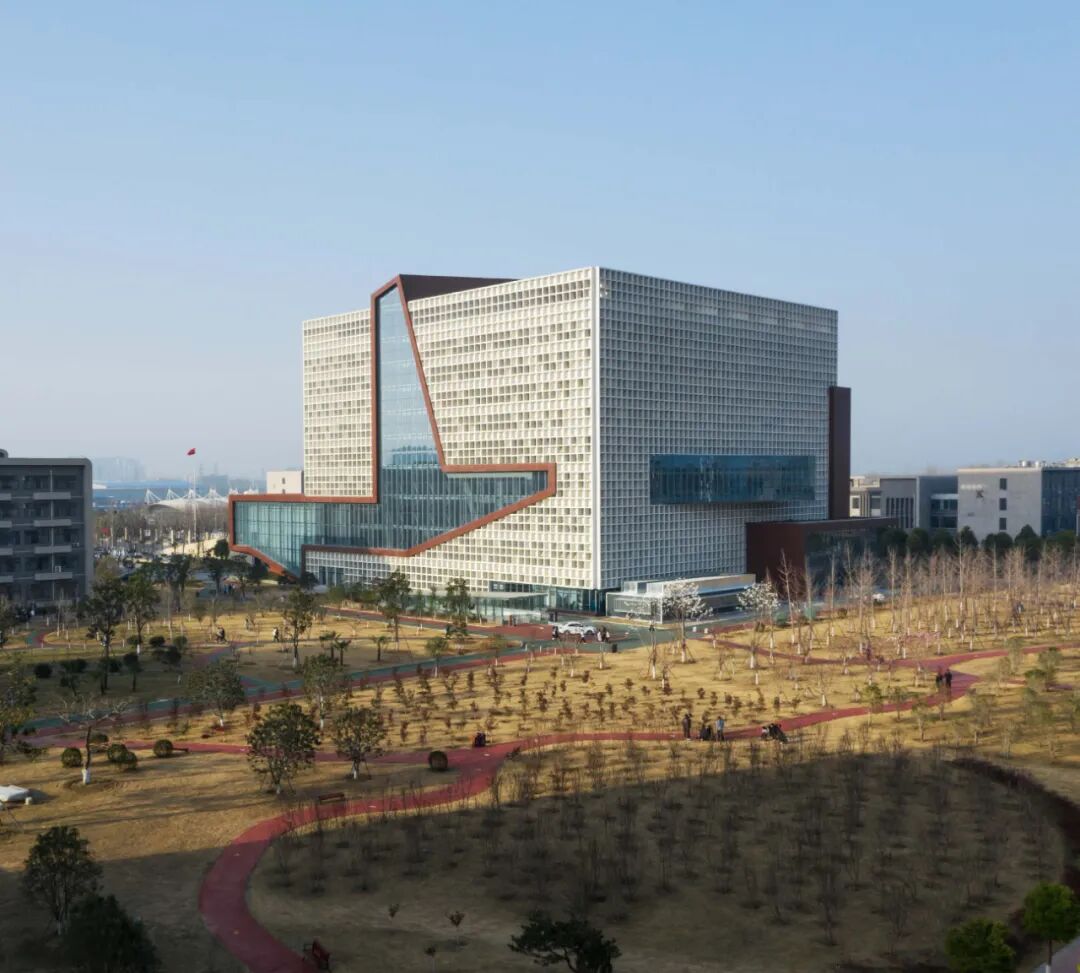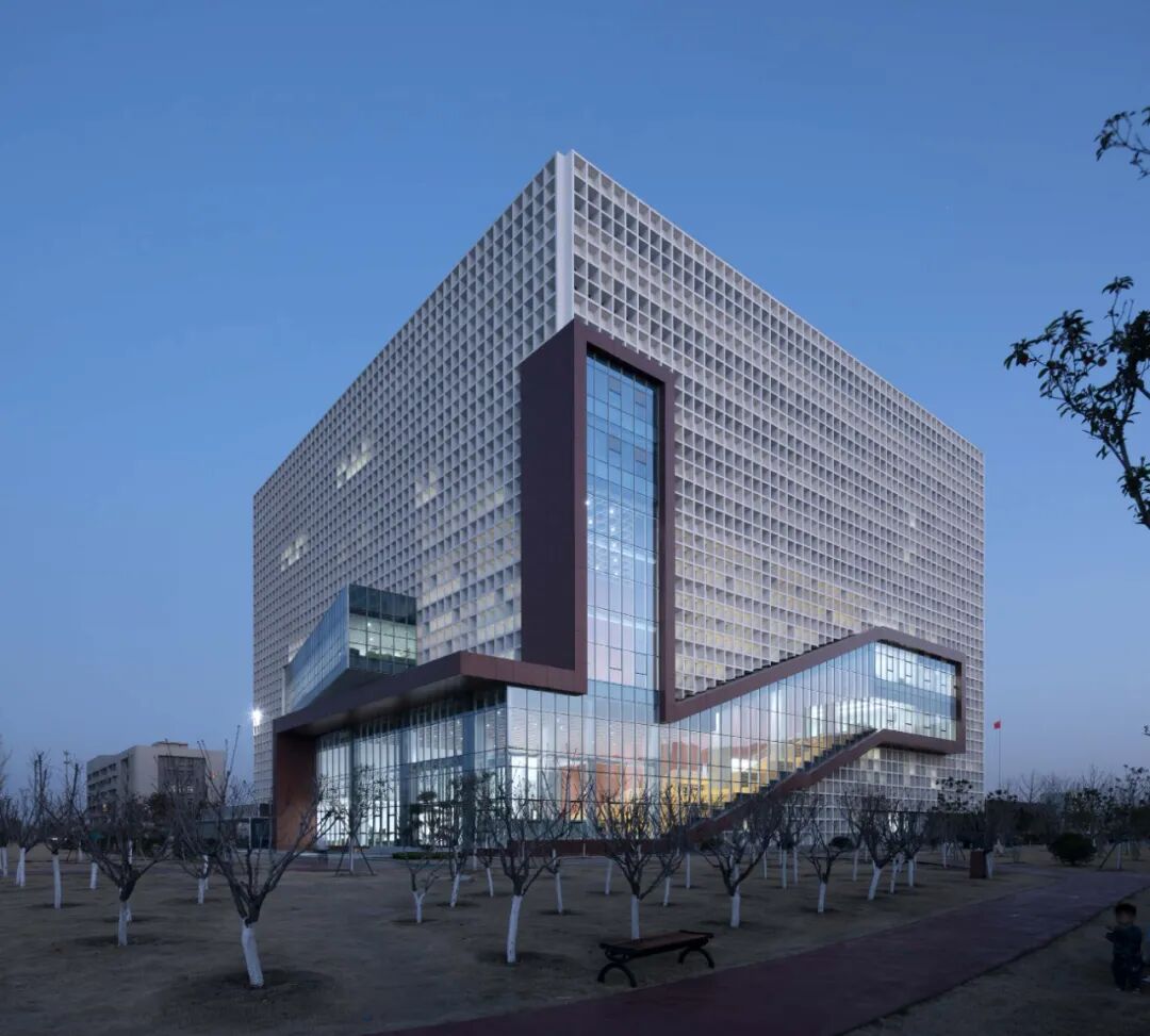 本工程为漯河职业学院新校区图书馆(中国食品教育博物馆),主要功能为图书馆、行政办公楼、博物馆和校史馆等。总建筑面积为32479㎡,建筑层数为9层,建筑高度为40.8米,总阅览座2000座,近期藏书量50万册,远期总藏书量约100万册。图书馆用地位于中轴线上,是校园中心区的高潮与焦点,也是控制校区的三条纵横轴线以及主要道路的交点所在,位置极为重要。
