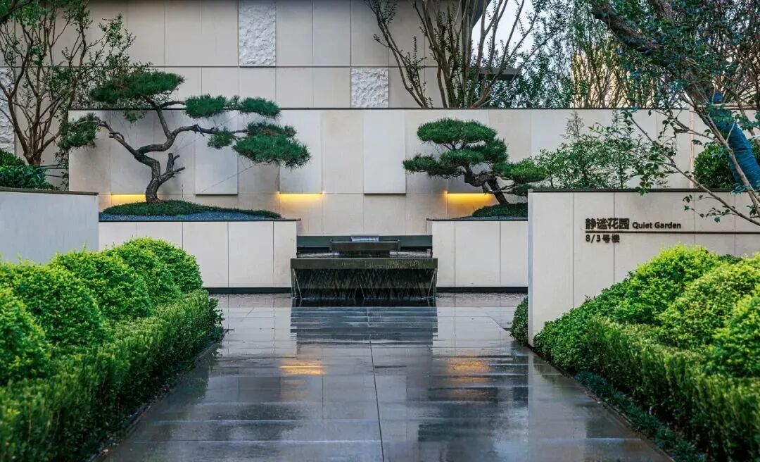 美好生活的底色在于对每一寸空间的热爱,即便是功能构筑立面,也承载着景观美学的考量。立面石材以规整韵律拼接,灯光沿肌理晕染,园中草木含翠,风过香远,精心营造的场景在这里涵养静谧,任时光在光影与花香中慢慢沉淀。