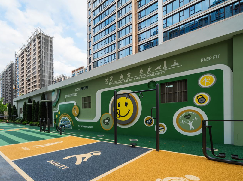 运动花园里,彩色地铺流转生机,设计以清晰的逻辑,勾勒出满溢活力气息的运动场域,恰与现代生活节奏同频。