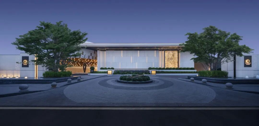 环形铺装与开阔空间保障车辆的流畅通行与停靠,实现落客、迎宾的高效动线。以圆形构建视觉焦点,强化场所归属感。实现了 “交通功能 + 礼仪体验 + 品牌展示” 的三重价值。