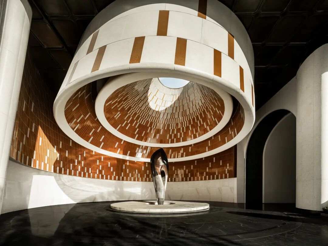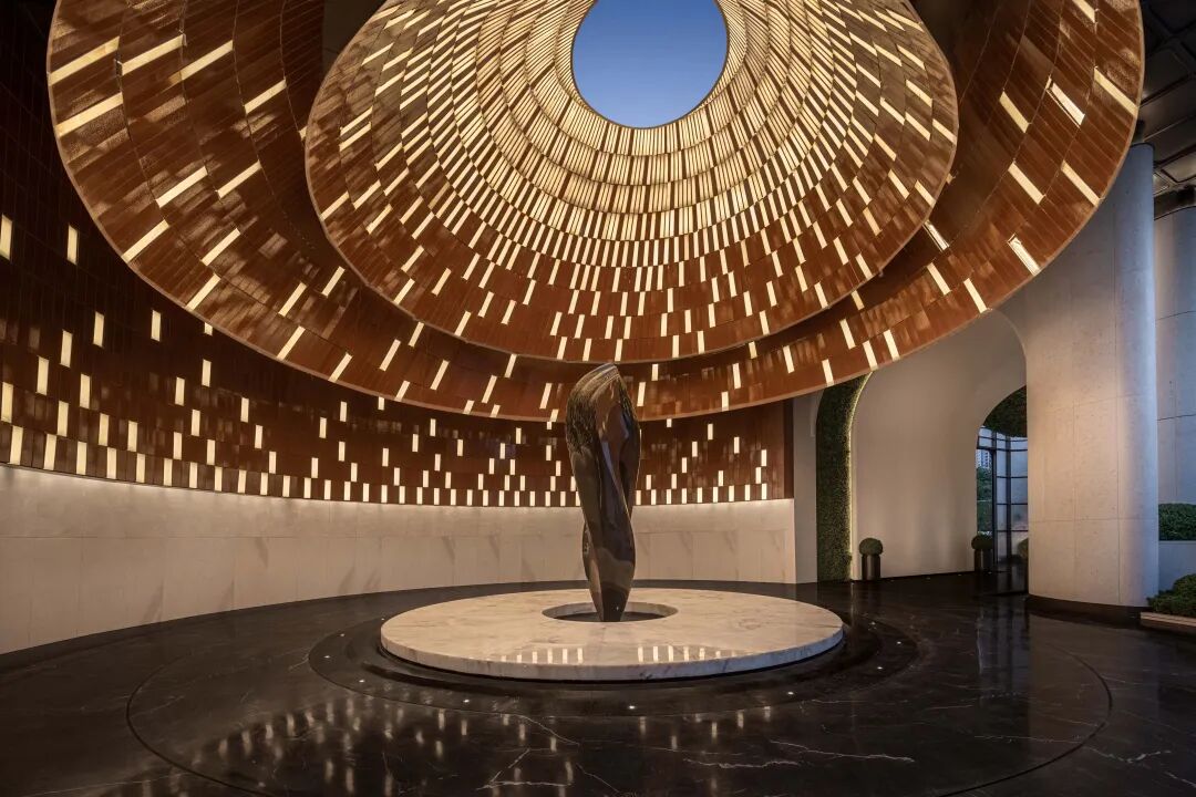 大尺度入口为展示区提供了充足的缓冲与引导空间,为后续的空间序列(核心筒艺术空间、景观庭院)做好 “铺垫”,实现了功能的实用性与空间的叙事性统一。