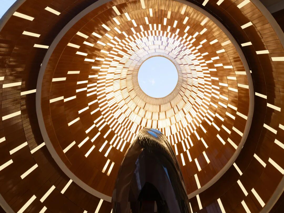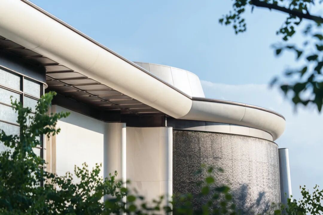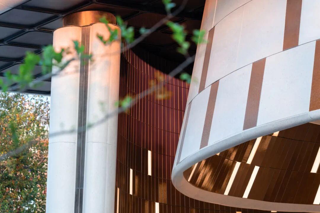 多层环形纹理和大屋顶的格栅化顶部设计,通过形态与材质的细节雕琢,打破了立面的单调感,赋予建筑造型丰富的层次与艺术感。