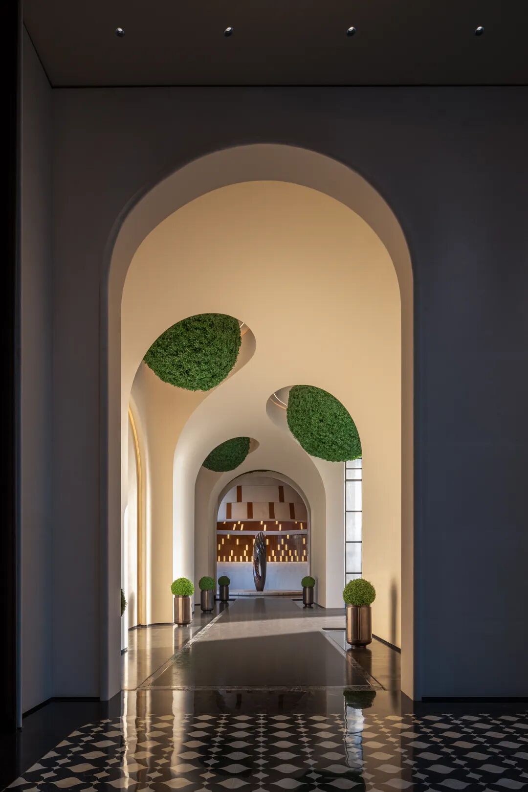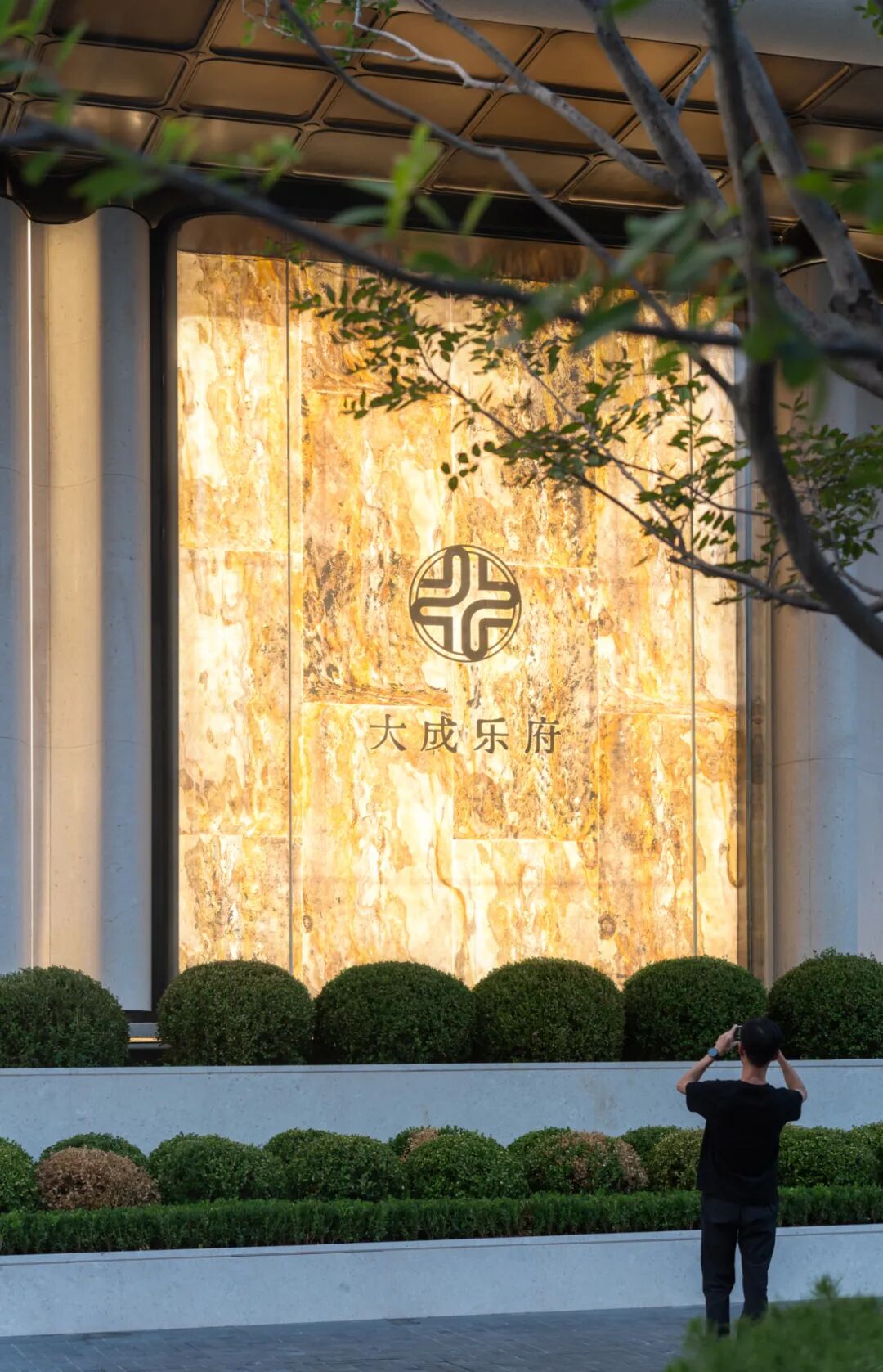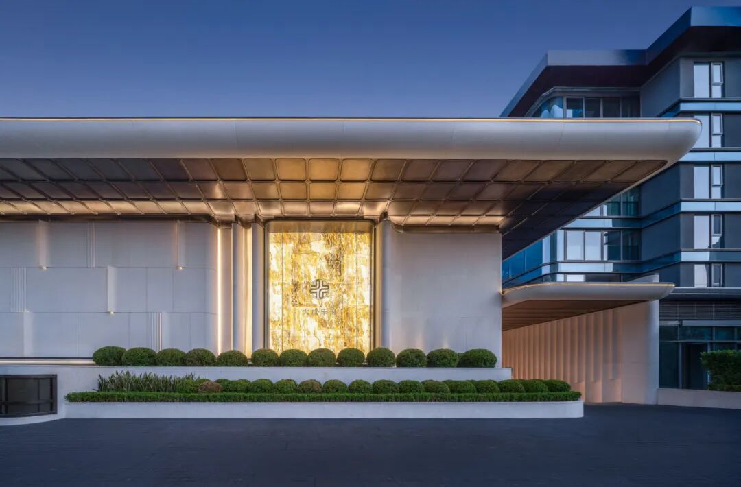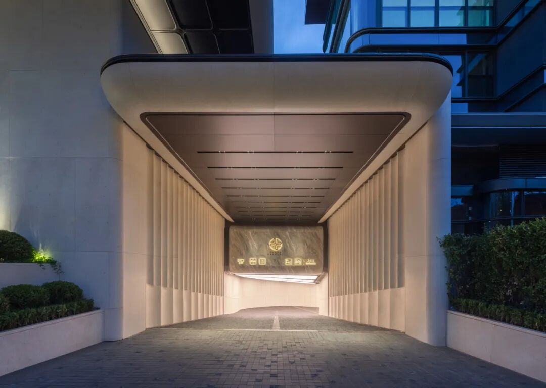 进一步强化了材质的奢华质感,使大尺度入口在不同时段都能呈现出 “白天显气派,夜间显精致” 的双重效果。
