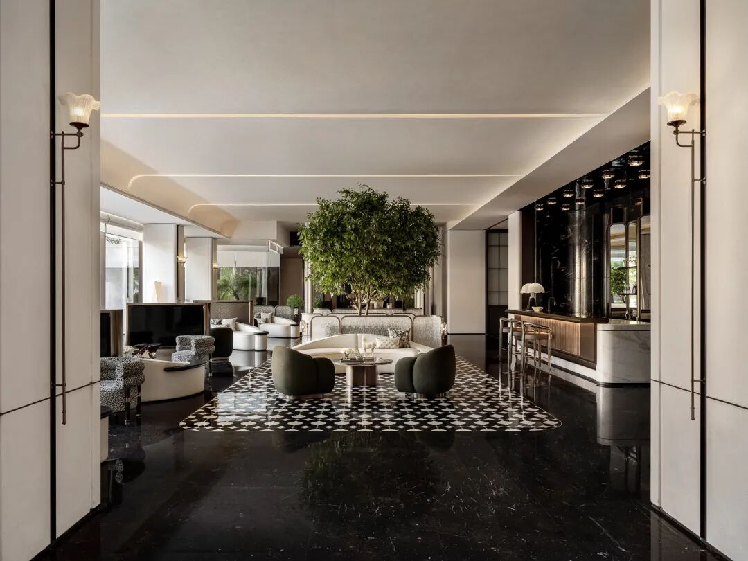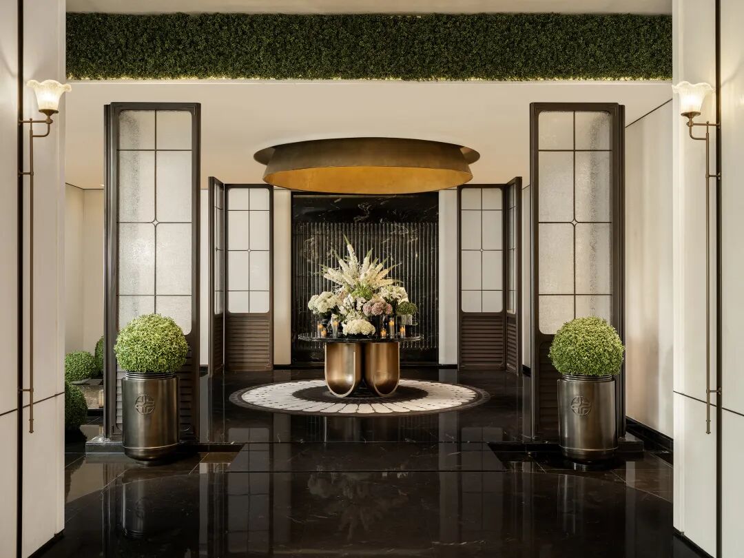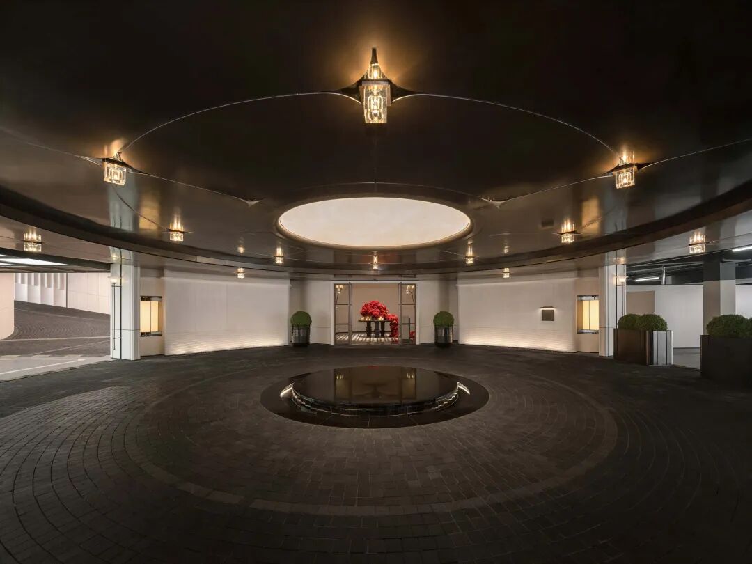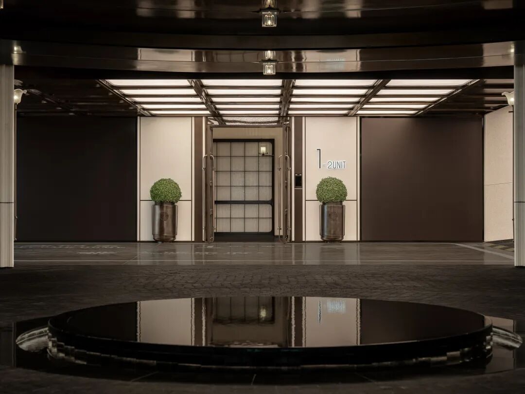 进一步强化了材质的奢华质感,使大尺度入口在不同时段都能呈现出 “白天显气派,夜间显精致” 的双重效果。