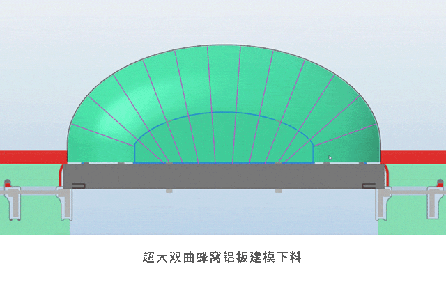 双曲蜂窝铝板最大尺寸达2000×4000mm,创新采用25mm加厚蜂窝铝板,并在板中增设埋钉辅助固定,结合边缘插接型材形成双重保障,以确保实现大尺度双曲板安装后的平整与稳定。
