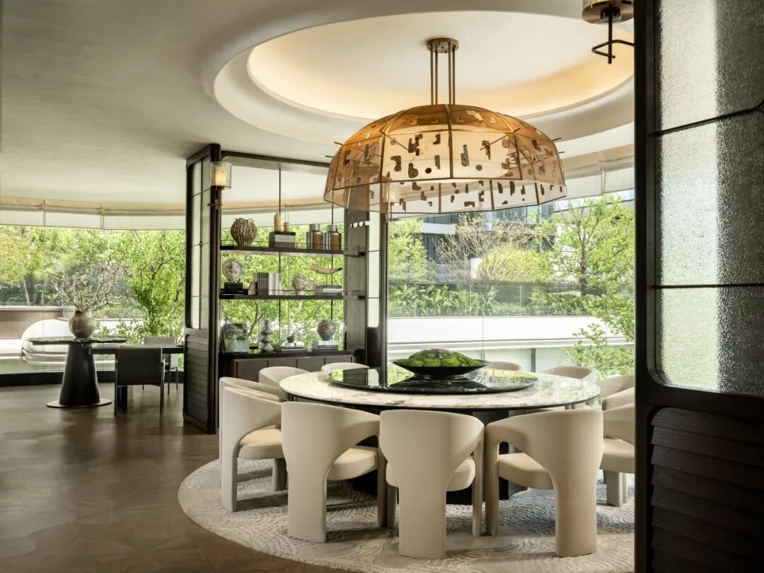 宴会厅提供了高端社交与宴请的场所,展示柜的陈设既丰富了空间层次,又可作为社交话题的载体,强化了会所的社交属性。