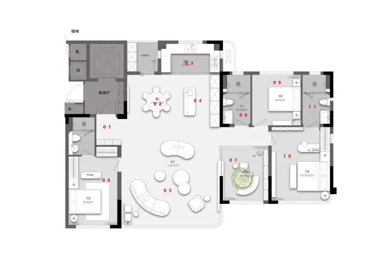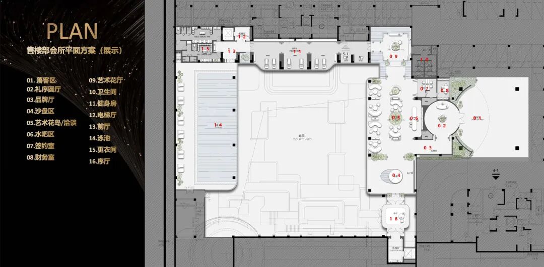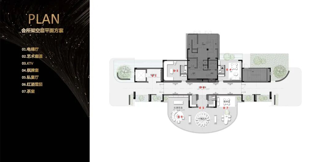 各功能区之间通过环形与线性结合的流线组织,保障了多方向的通行效率,宴会厅与健身房的线性流线则适配其功能的单一性,整体流线既避免了空间的拥堵,又实现了功能区之间的便捷可达,提升了会所的使用效率与体验感。