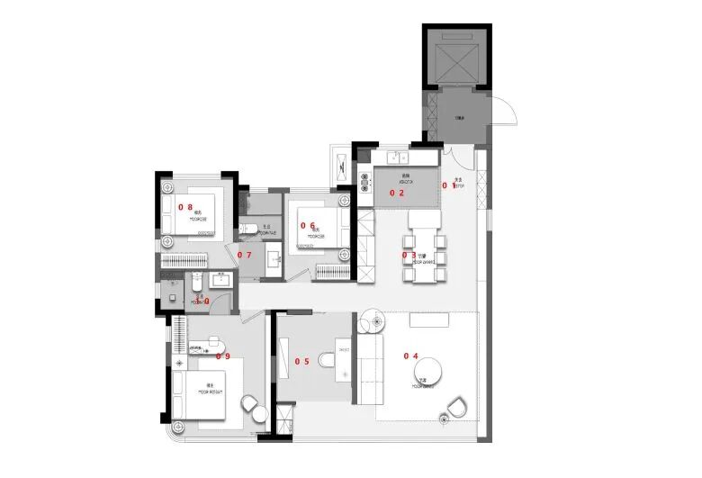 该户型采用4.8 米净面宽小宽厅设计。规划4 房 + X 拓展空间,功能布局灵活多元。动静分区明确,公共区域互动性强,私密卧室区保障居住私密性。空间动线流畅,又通过拓展空间为生活场景提供更多可能性。