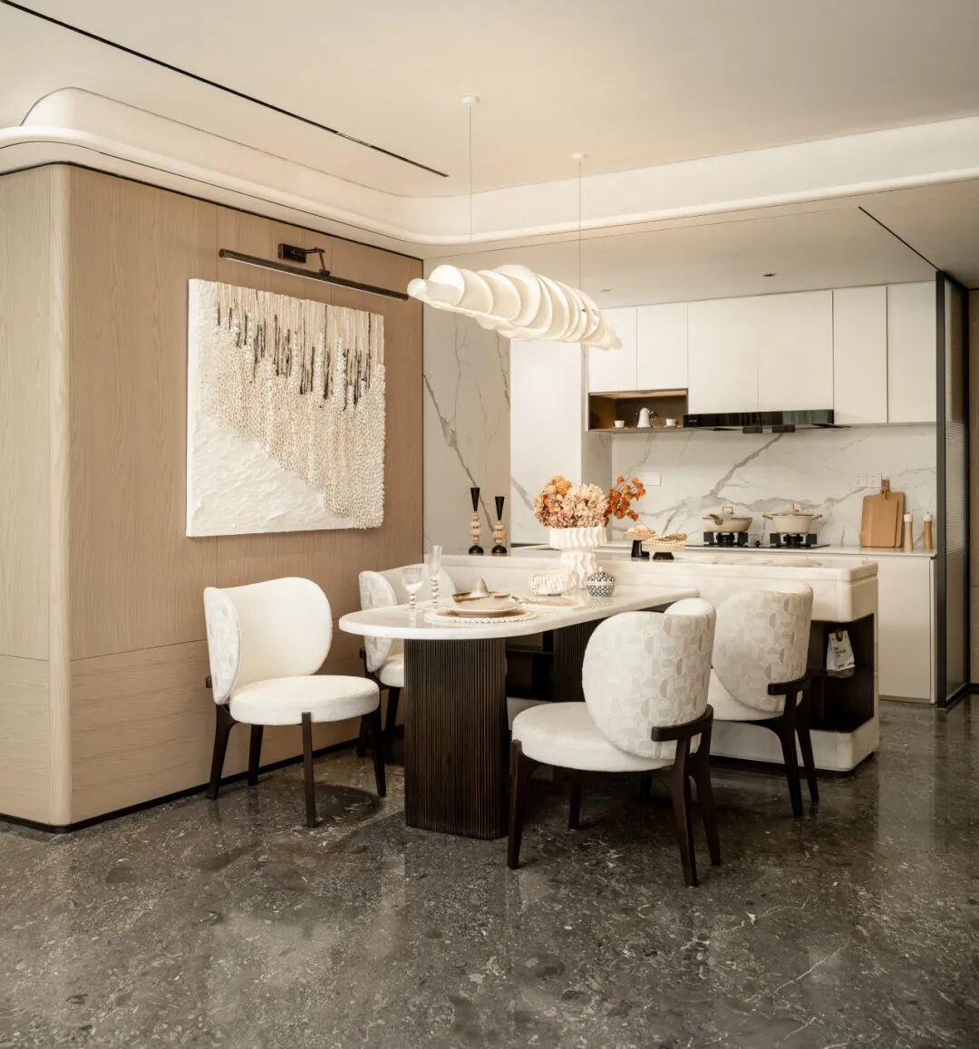 对几何形态进行艺术化解构与重组,将理性的几何元素转化为感性的艺术语言,既符合现代设计的简约逻辑,又通过形态的雕塑感营造出艺术氛围。