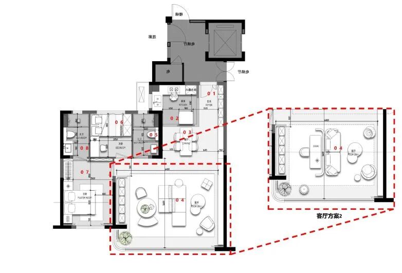 该户型采用小宽厅 + LDKG 一体化设计,公共区域通透互动。客厅为可变空间,提供多种布局方案,适配不同生活需求。卫生间实现干湿分离,提升使用效率与舒适度。整体功能分区清晰,动线流畅,在保障空间通透感的同时,通过可变布局与细节设计。