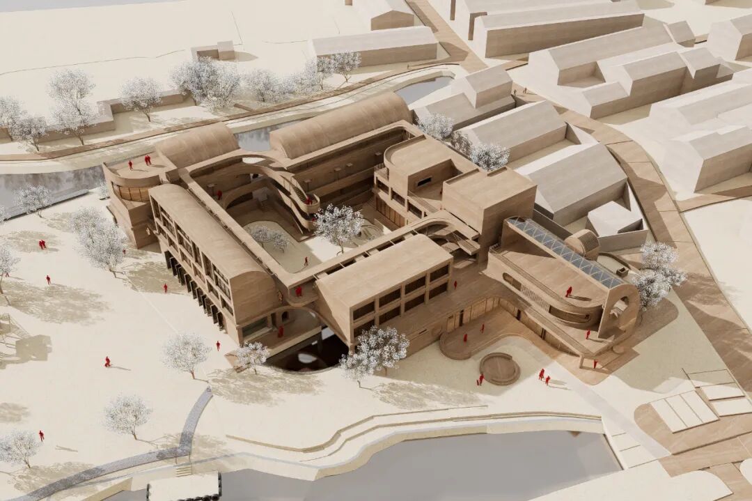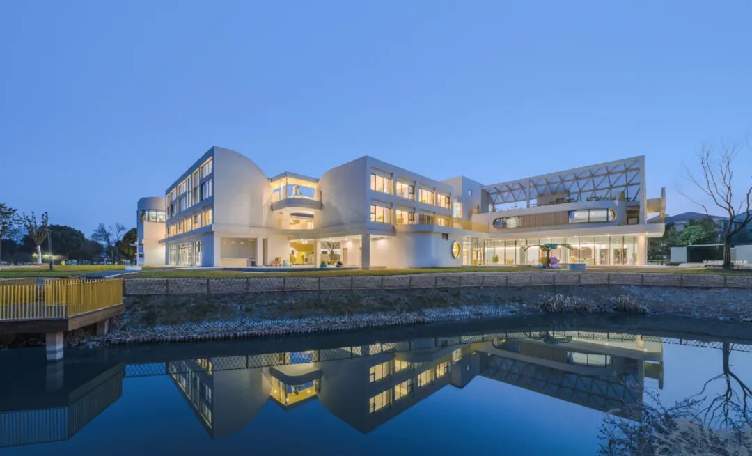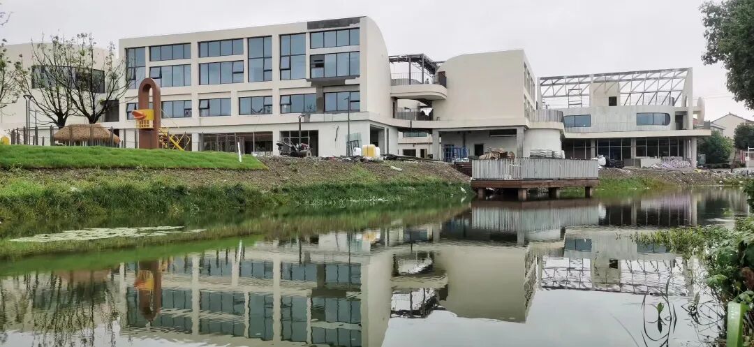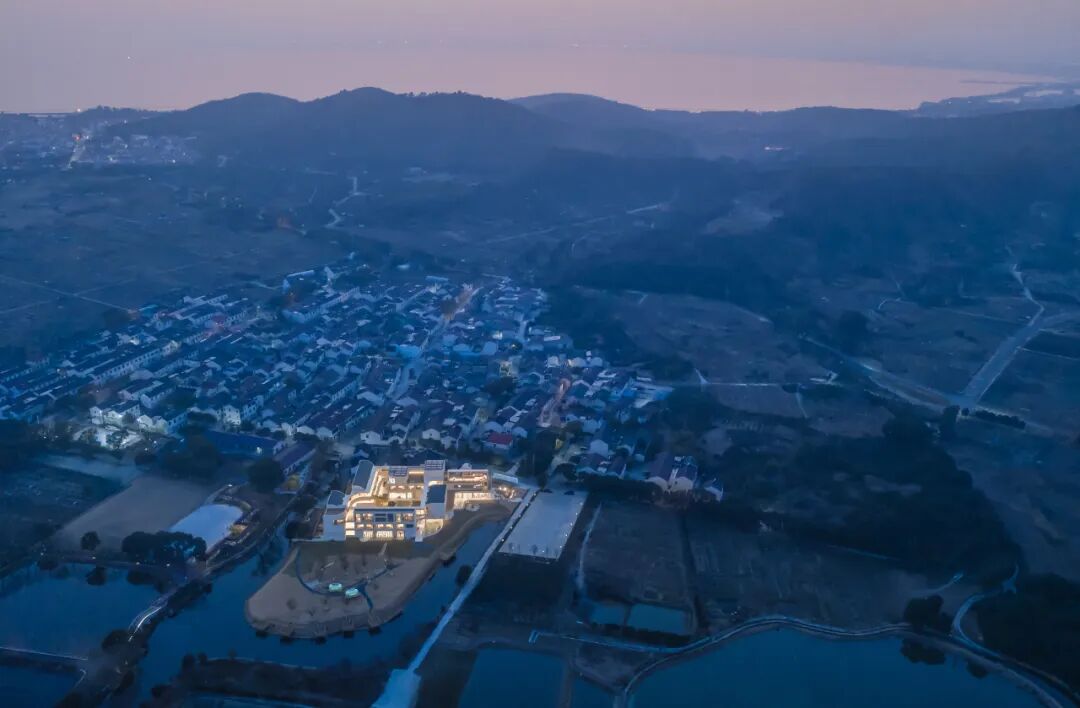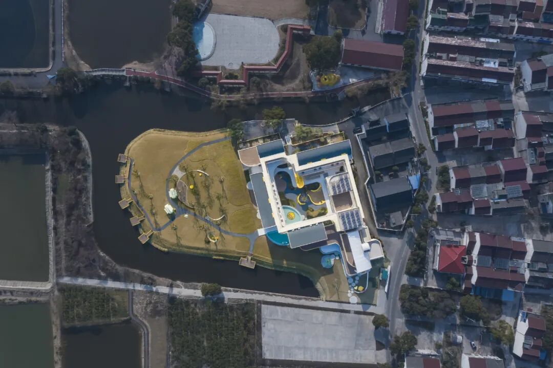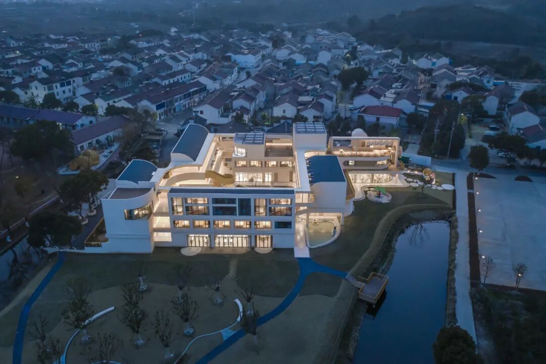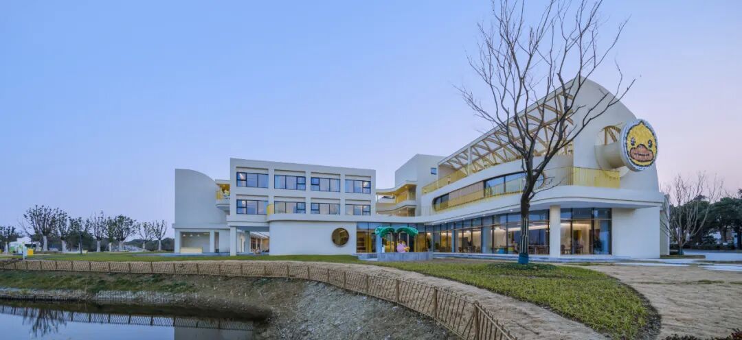 B.Duck小黄鸭亲子度假酒店位于常州雪堰镇雅浦半岛,坐拥三面环水的自然格局,是太湖湾旅游度假区内的关键文旅节点。设计面临的核心议题是:如何将一个高辨识度的商业小黄鸭IP,有机融入一个拥有百年祠堂、原生香樟林及丰富水域景观的典型江南村落,并打造一个亲近自然的亲子游目的地。