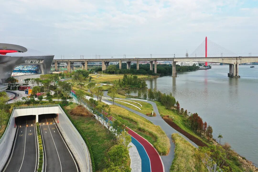设计巧妙打破城市与水域的隔阂,通过营造丰富的复层滨水空间,将德胜河的自然景致引入城市腹地。多元的慢行系统如同一条条纽带,连通了德胜河生态通廊,让这里成为一条汇聚人气、充满活力的亲水生活带。