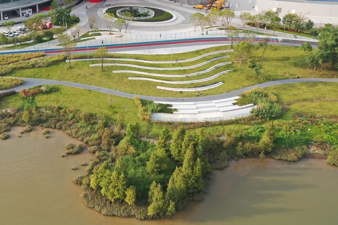 以“生态滨河水岸”为核心纽带,打造多层级的亲水漫步系统,并引入生态草沟、雨水花园等绿色基础设施,形成能够弹性应对雨洪的天然海绵体,展现自然野趣之美。