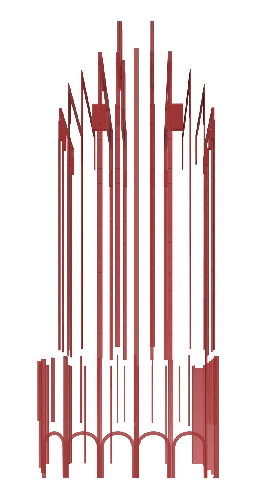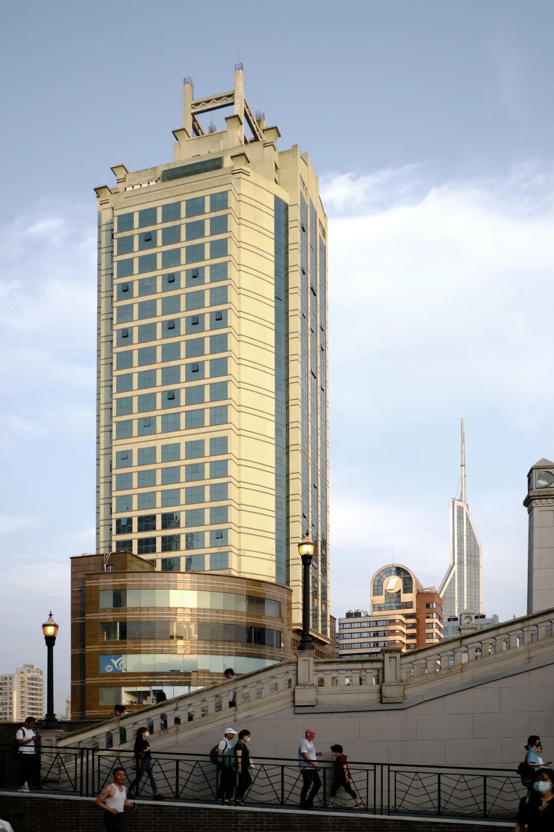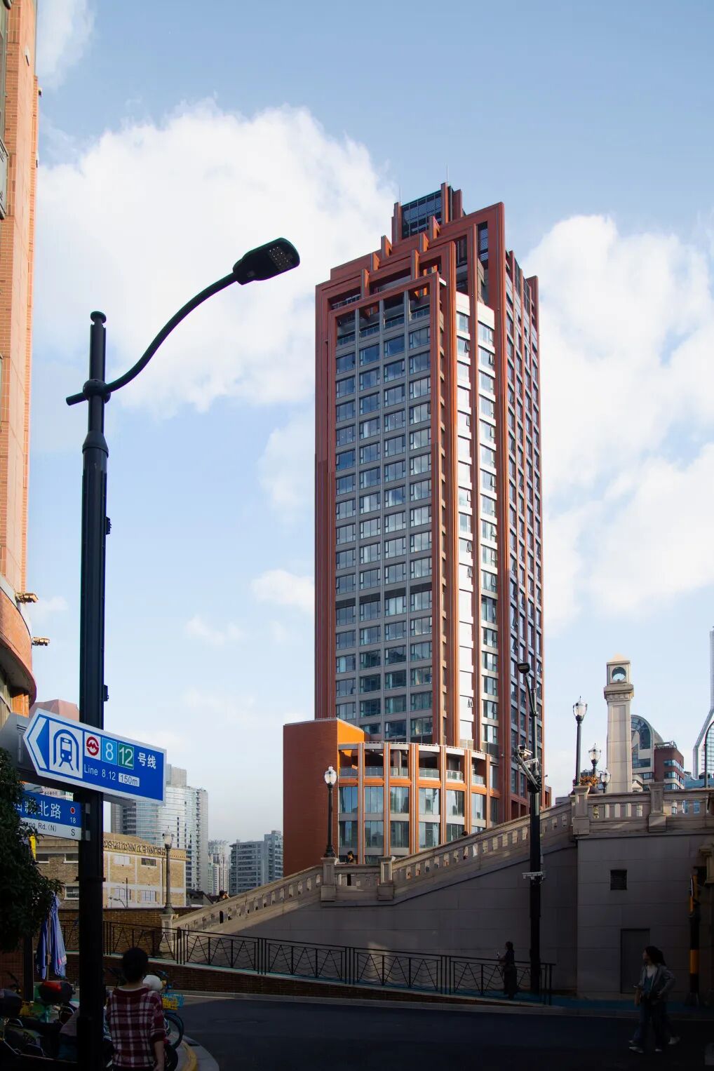 · 设计策略:延续苏州河沿岸历史建筑群的竖向立面线条节奏,并融入红砖、圆拱等体现外滩近代建筑特征的经典元素,通过层层递进的装饰线条重新勾勒出建筑挺拔而优雅的轮廓。这既是对海派文脉的致敬,也是对“煤气包”工业记忆的一种抽象化、艺术化的当代转译,让历史在新的功能体中得以延续和升华。
