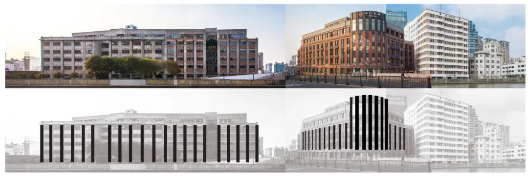 从苏州河岸工业建筑上提取的立面垂直线条