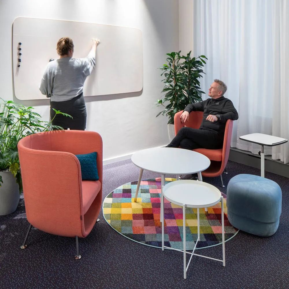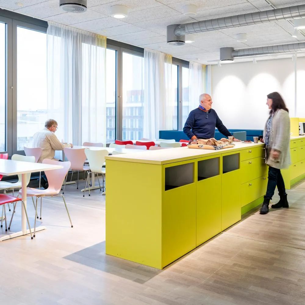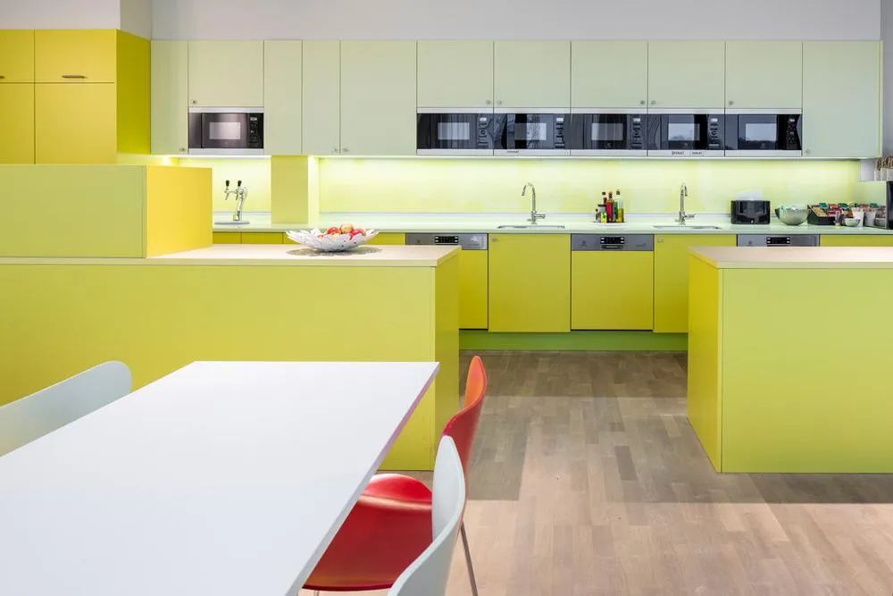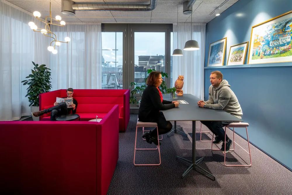 为了创造成本效益,本案全部采用Tikkurila自己的涂料、油漆和施工团队。双方的紧密合作,将色彩与工作环境的完美结合发挥的淋漓尽致。丰富的色彩搭配、多样化的家具组合、结合各种有趣的创意巧思,共同创建了一个灵活、靓丽、时尚多元的现代工作环境。