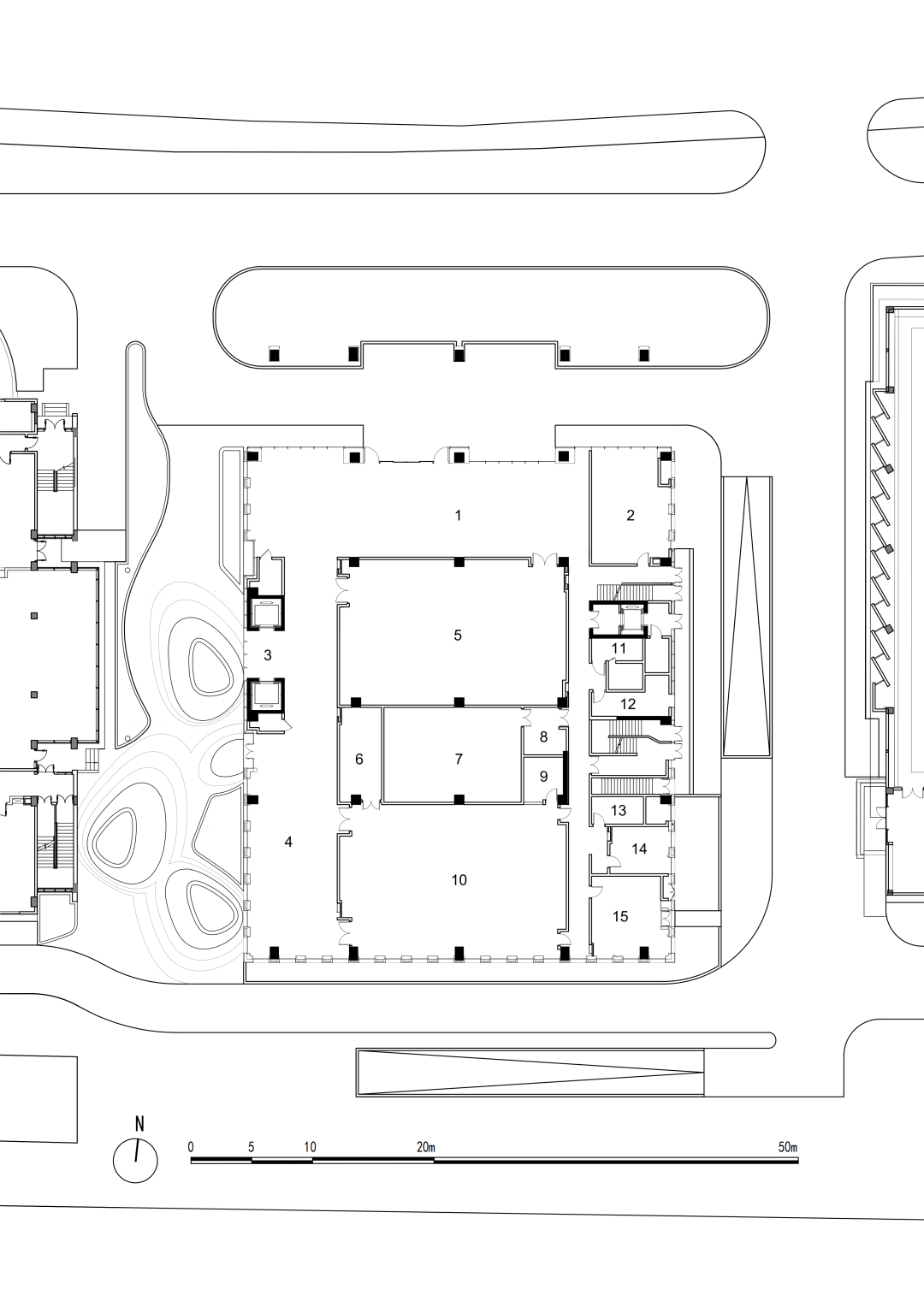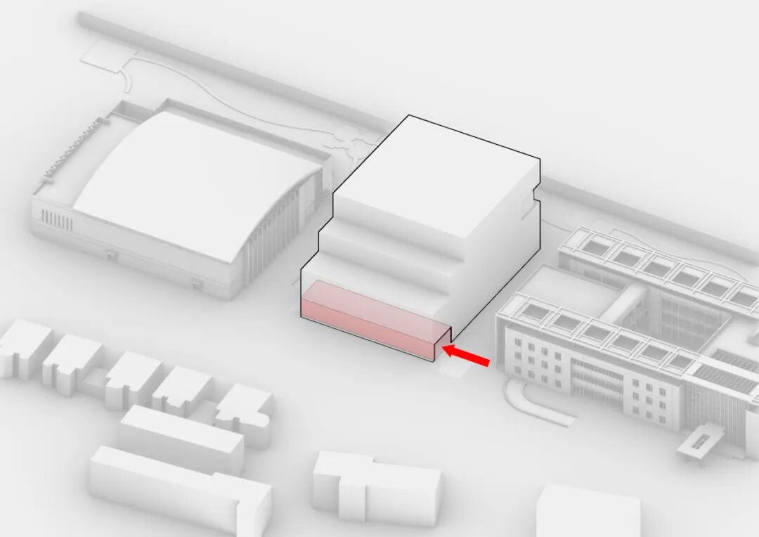 建筑北侧首层主入口落客区采用架空设计,既保持建筑形体的纯粹,又创造富有仪式感的入口序列。