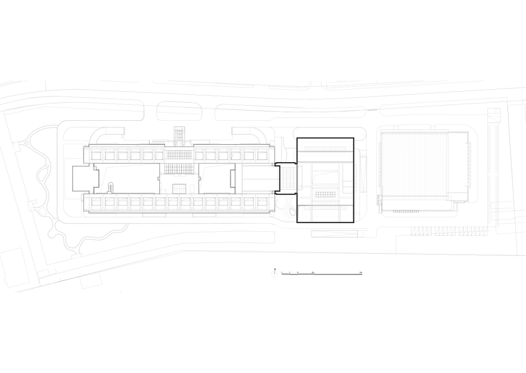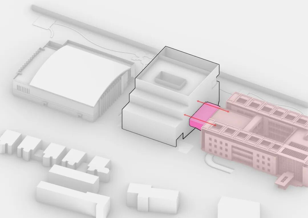 面对基地局促、功能复杂的挑战,设计团队从城市整体关系出发,注重与既有建筑的协调互动,提出以下设计策略。