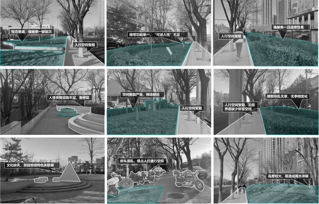 4.文化记忆缺失——无地域特色的街道家具、标识系统,“梨园”文化元素未被挖掘,场地识别性差。