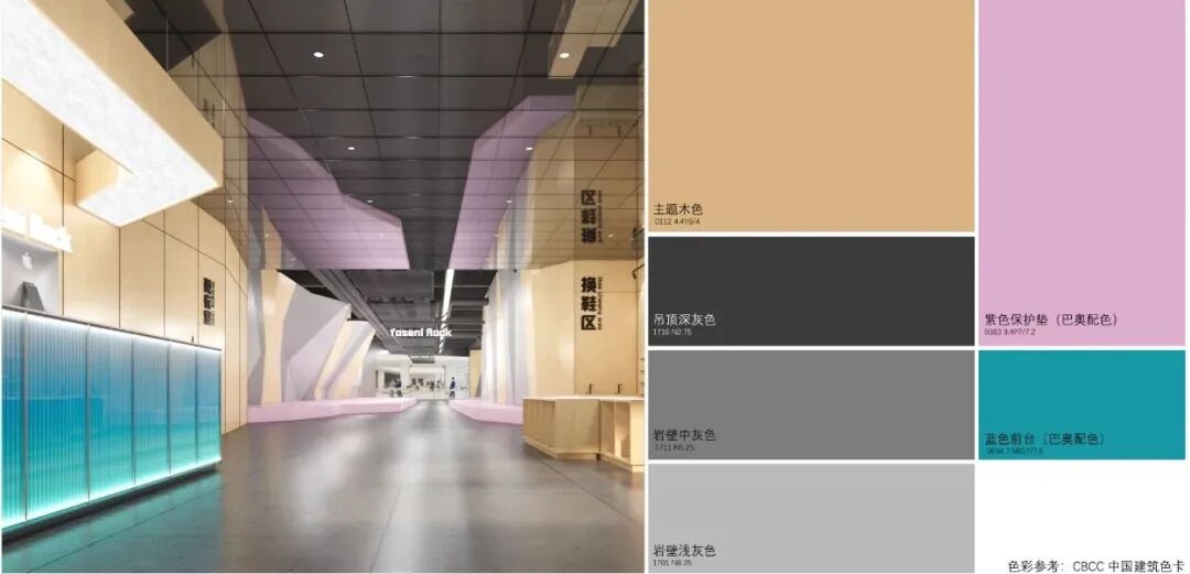 室内「综合岩壁」:位于商场内部,串联换鞋区、储物区等功能区