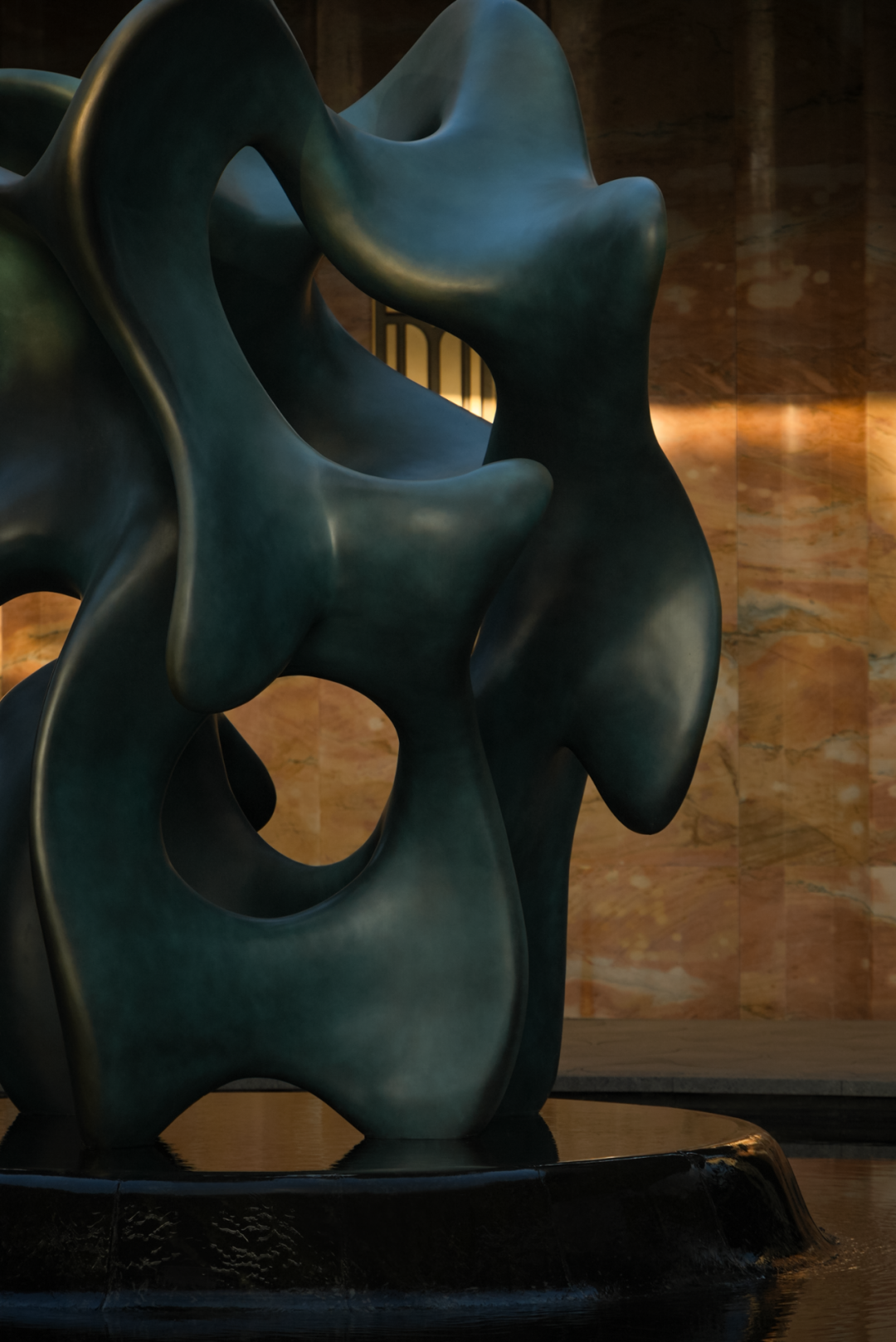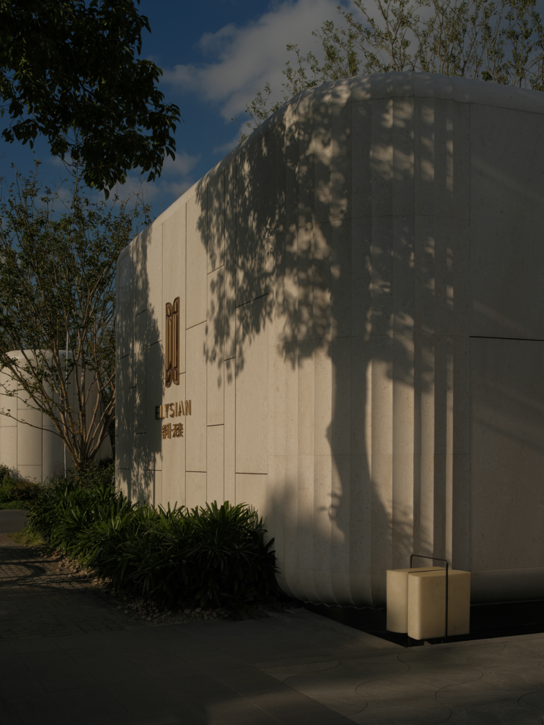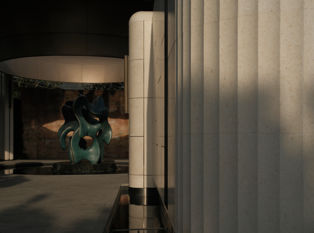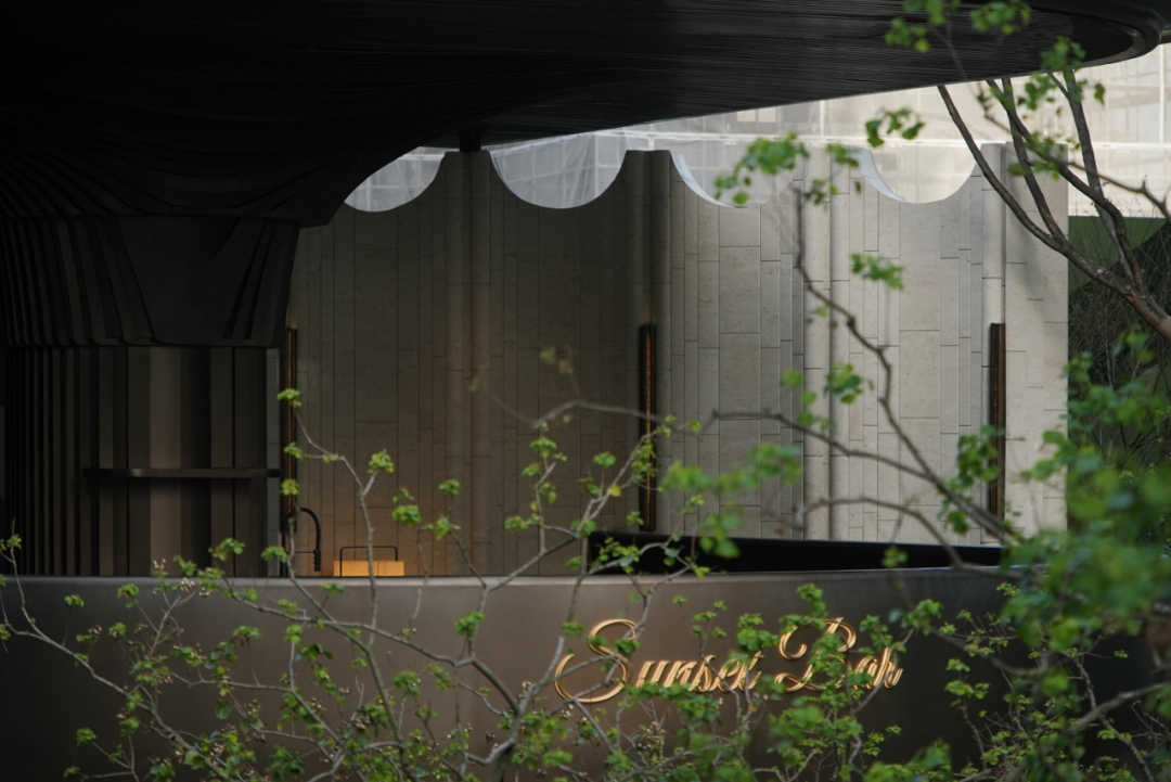 入口昭示面的黄铜饰面与石材柔美曲线,以轻奢材质和流动形态弱化城市硬边界,形成昭示性极强的“城市橱窗”。
