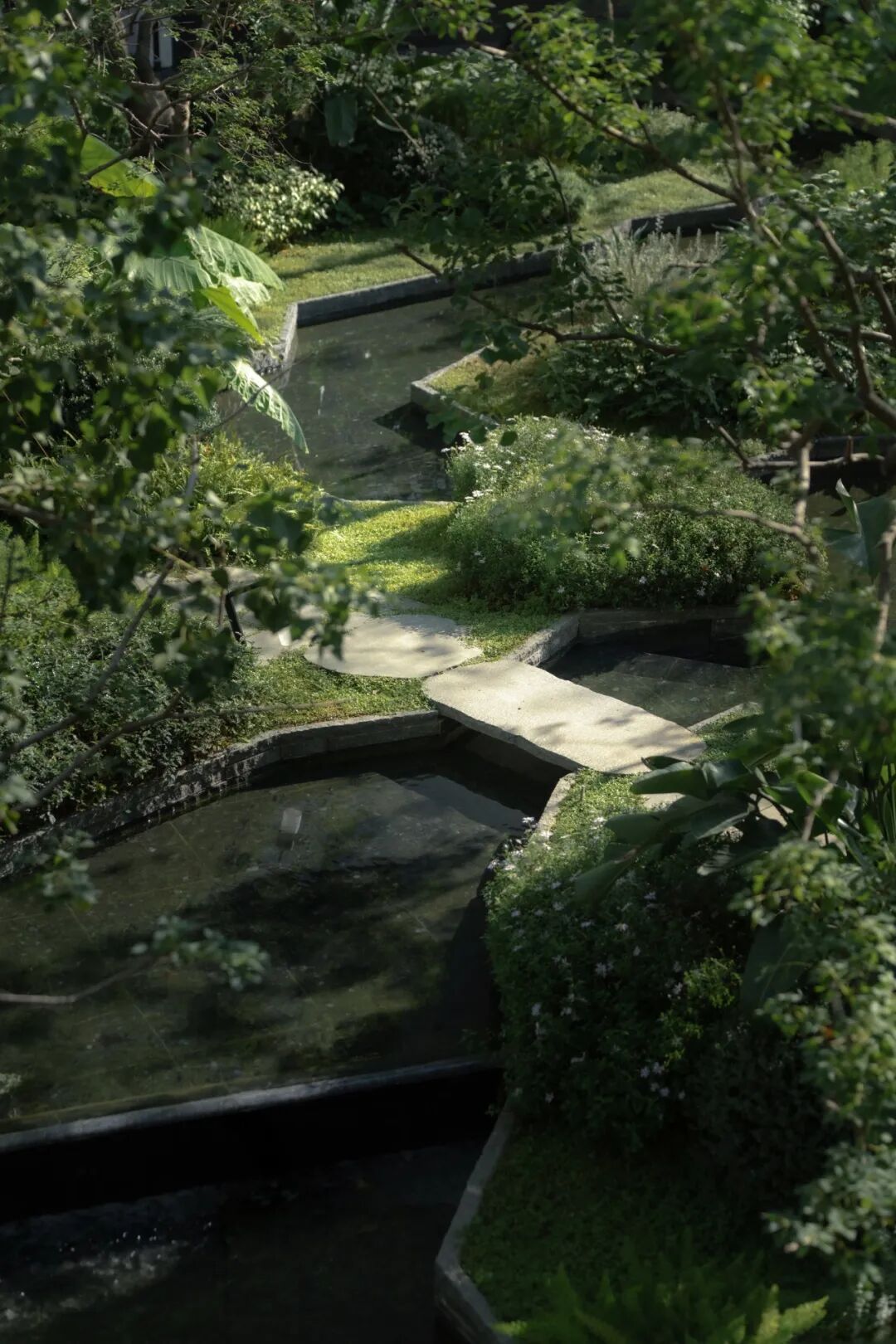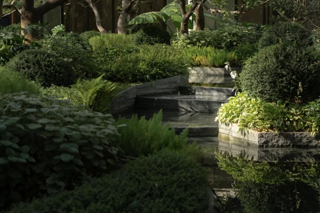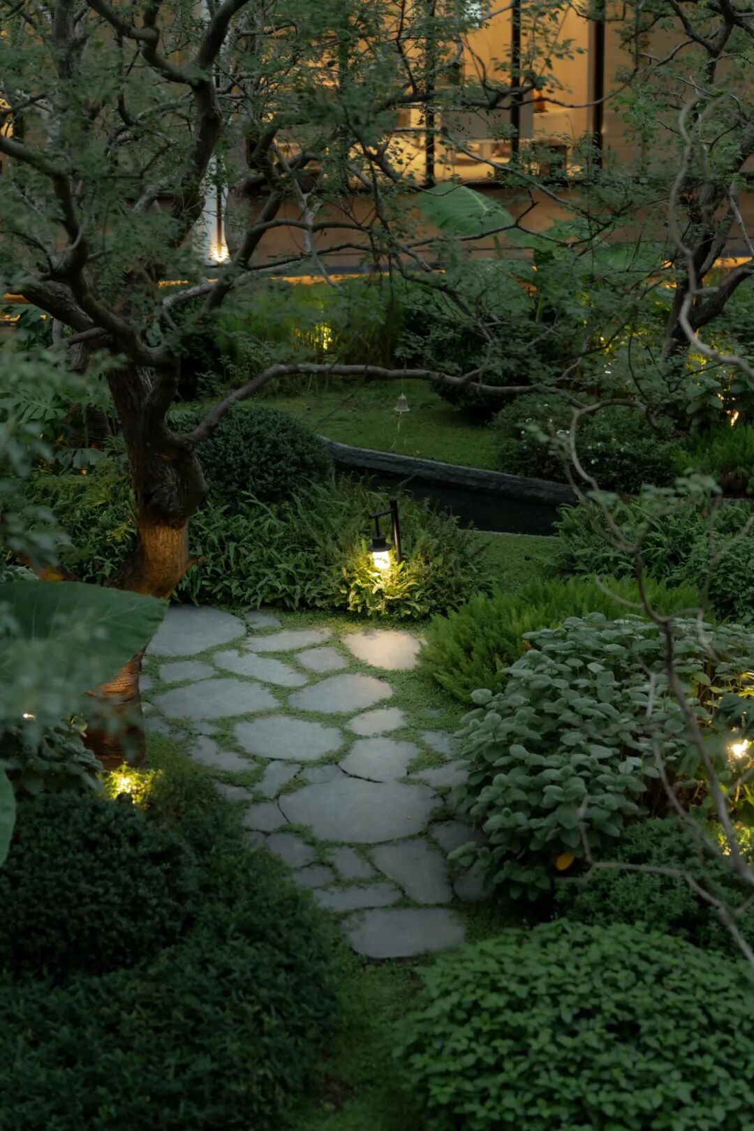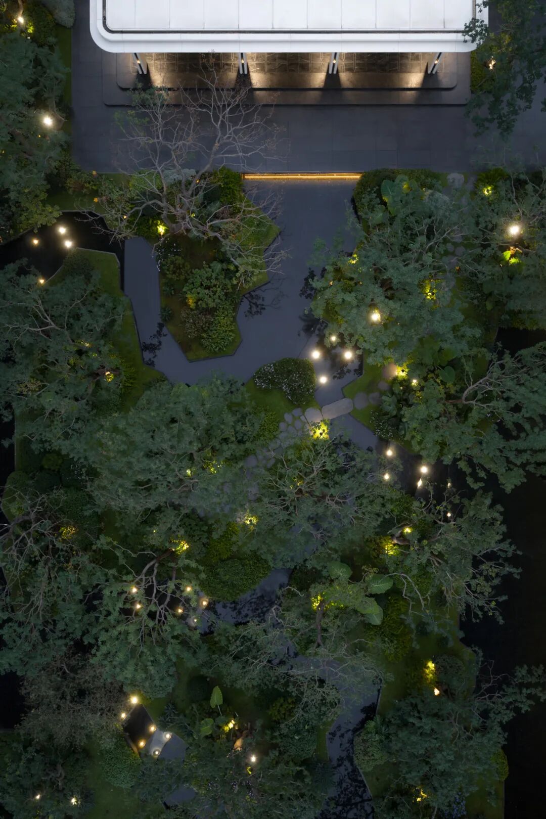 以自然生长、森林水岸的共生庭院,展示雅致静谧的情感庭院