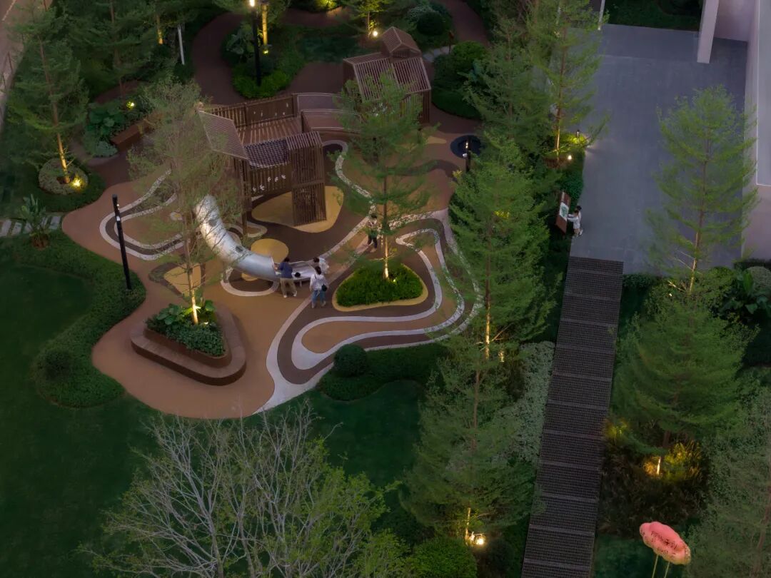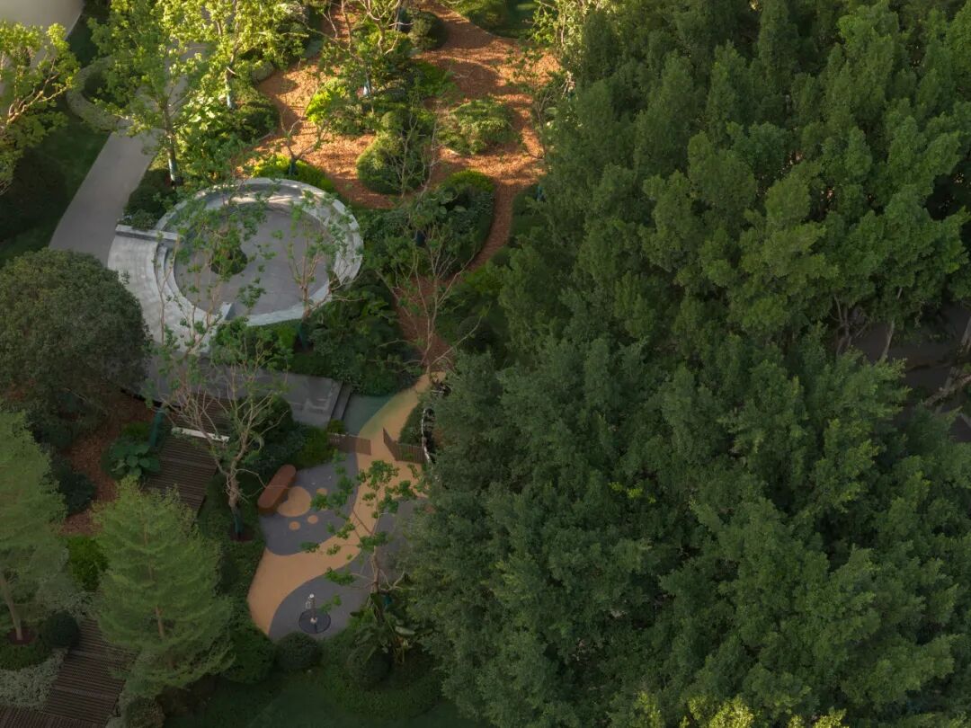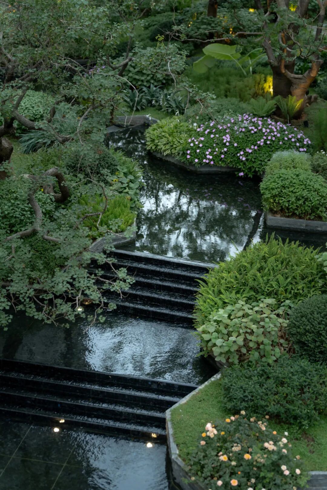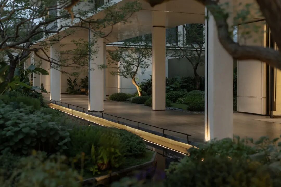 以自然生长、森林水岸的共生庭院,展示雅致静谧的情感庭院