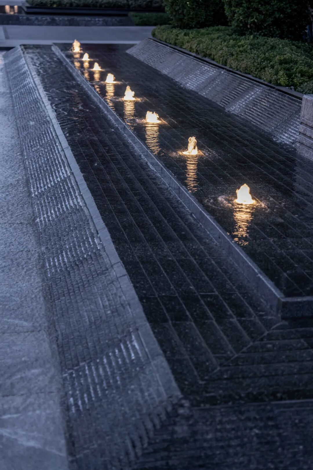 水景的出现为人群带来活跃生动化的场地氛围,增强微环境感知力,打破空间的单调,使空间与自然对话,场地与自然交融;使空间在平面及立面上融入绿意,传递优雅高级的气质,从而创造出独特且舒适的环境。