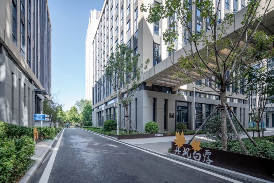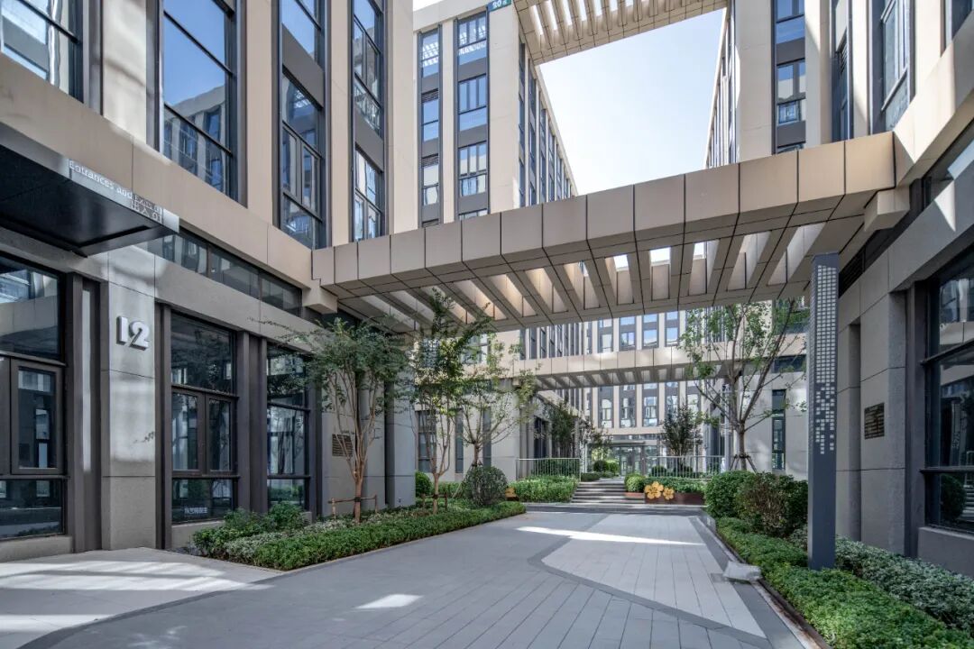 十六栋厂房以四栋为单元,界定了四组核心庭院空间。景观设计以此为基础,用植物主题回应建筑布局,为每个节点注入鲜明的场所精神,最终打造出“杏雨涧云、丹枫白露、棠心如玉、桃李芳华”这四个名如其境、功能与意境并重的主题空间。