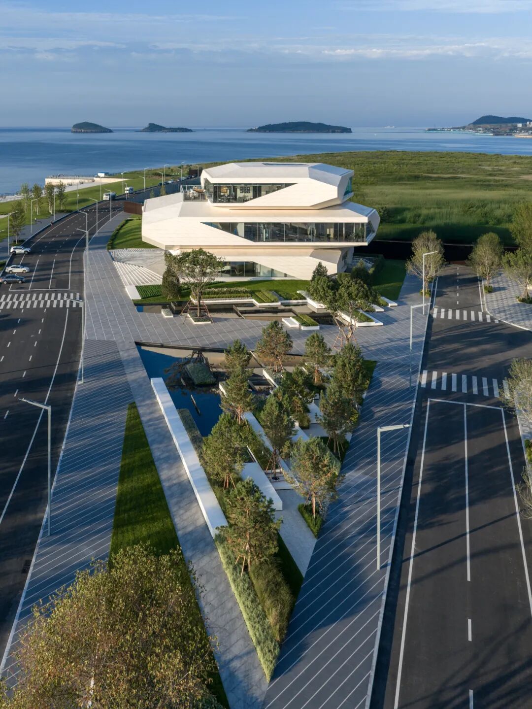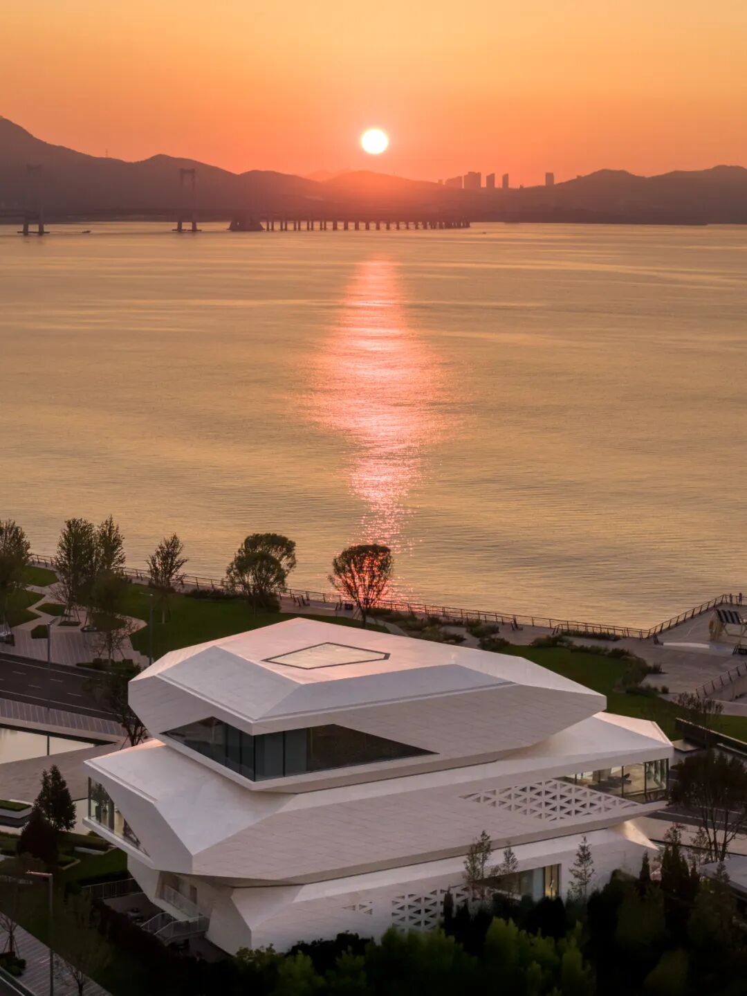 凌水湾「石棱镜」的设计立足于大连“山海连城”的城市格局,以简洁而克制的抽象体量,在山与海之间确立一种清晰而有力的空间姿态。它不是被动地“嵌入”海岸线,而是在城市与自然、日常与非常之间,为公众提供了一个可亲近、可驻足、可共享的空间。