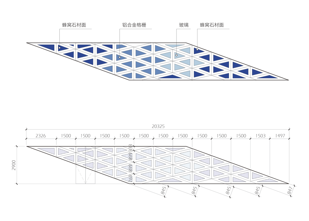 立面材料:蜂窝复合石材、中空玻璃